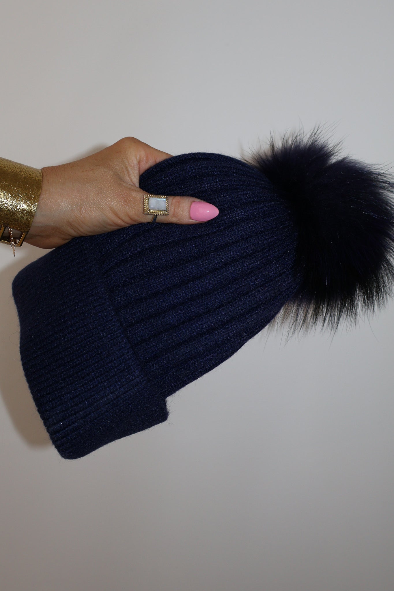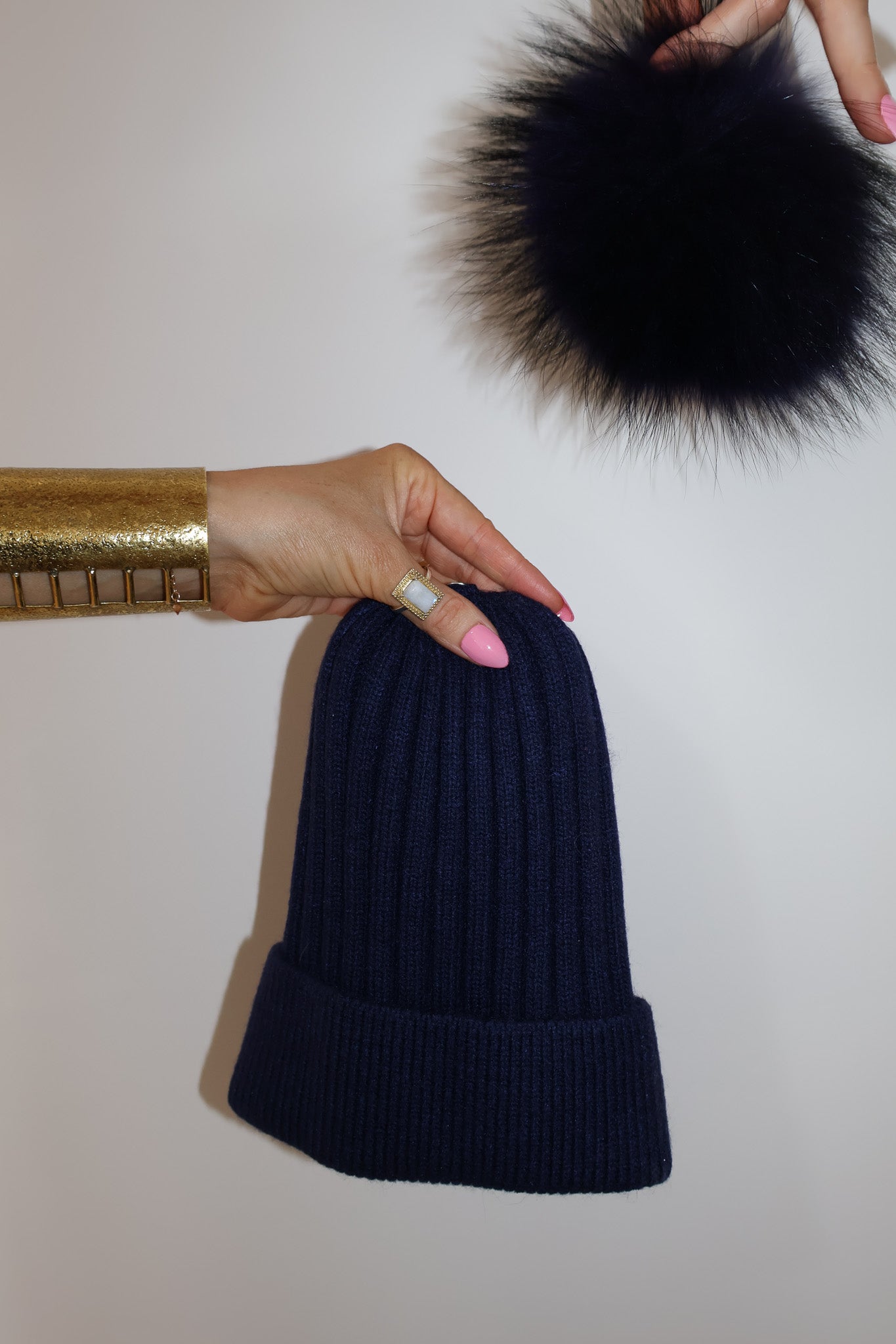 Après Angora Cashmere Pom Pom Beanie Midnight