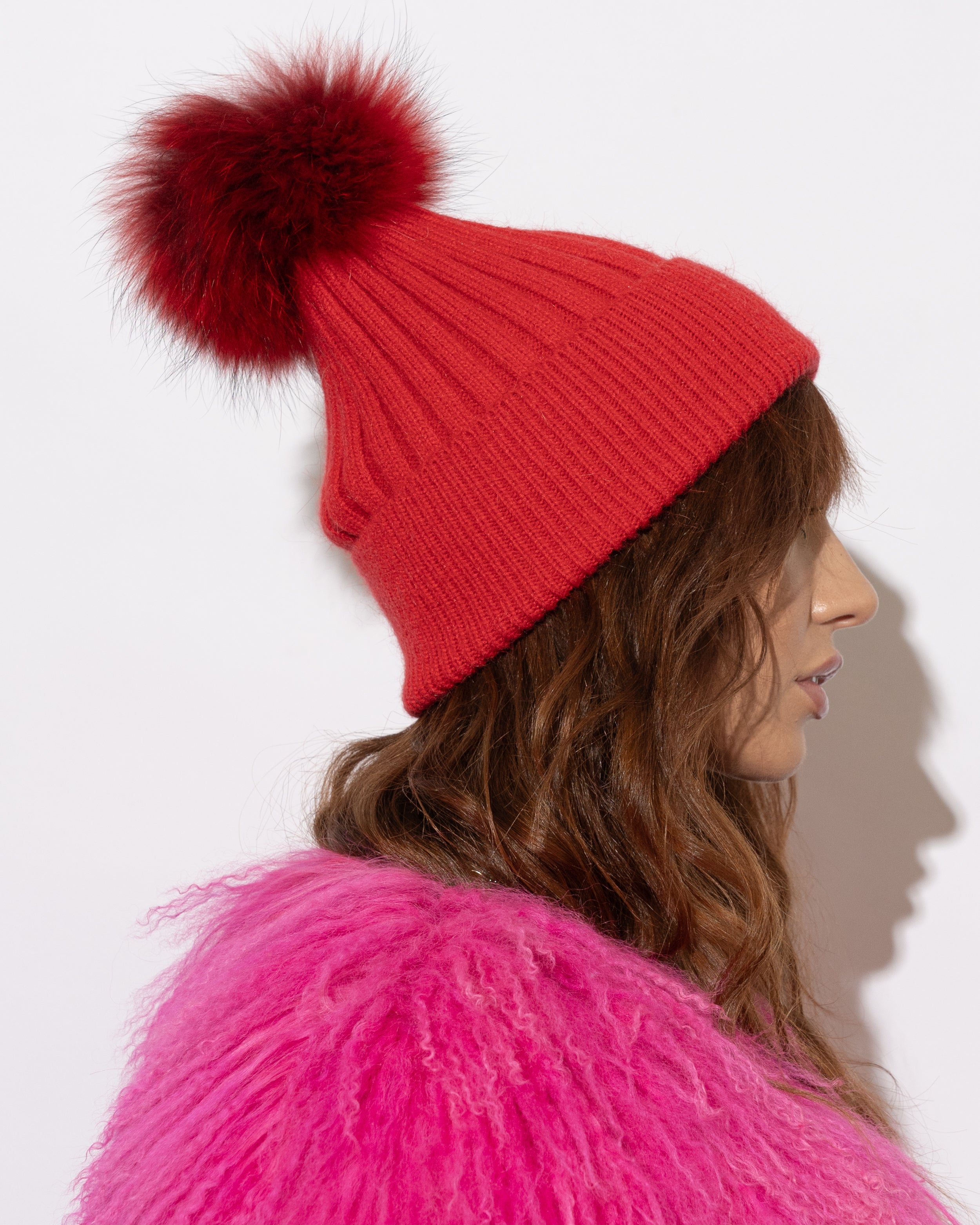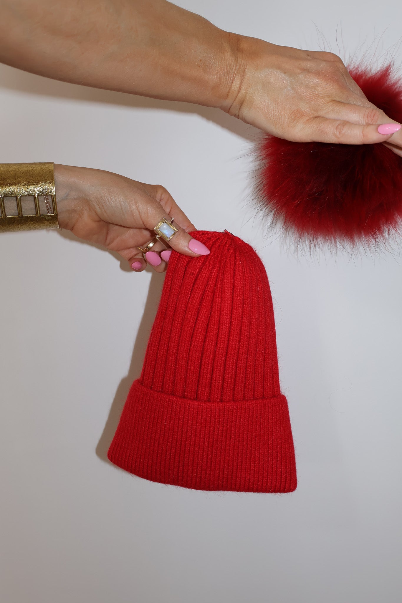 Our gorgeous Angora Red Beanie with Pom Pom is a must-have winter accessory for those needing a little extra warmth in the cooler weather. The fur pom pom is detachable, so this red beanie with pom pom can be worn with or without the pom pom - although we always recommend with!