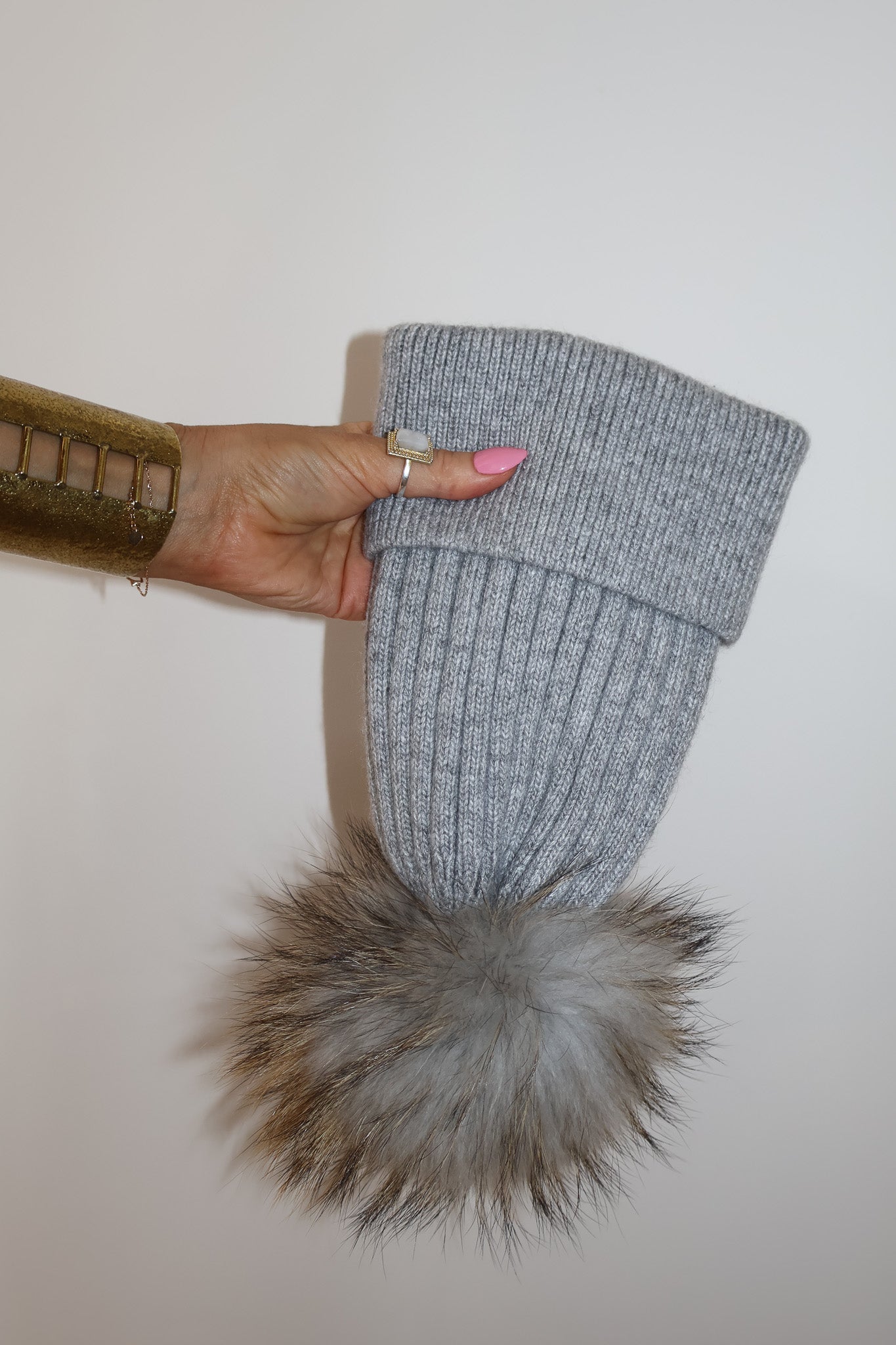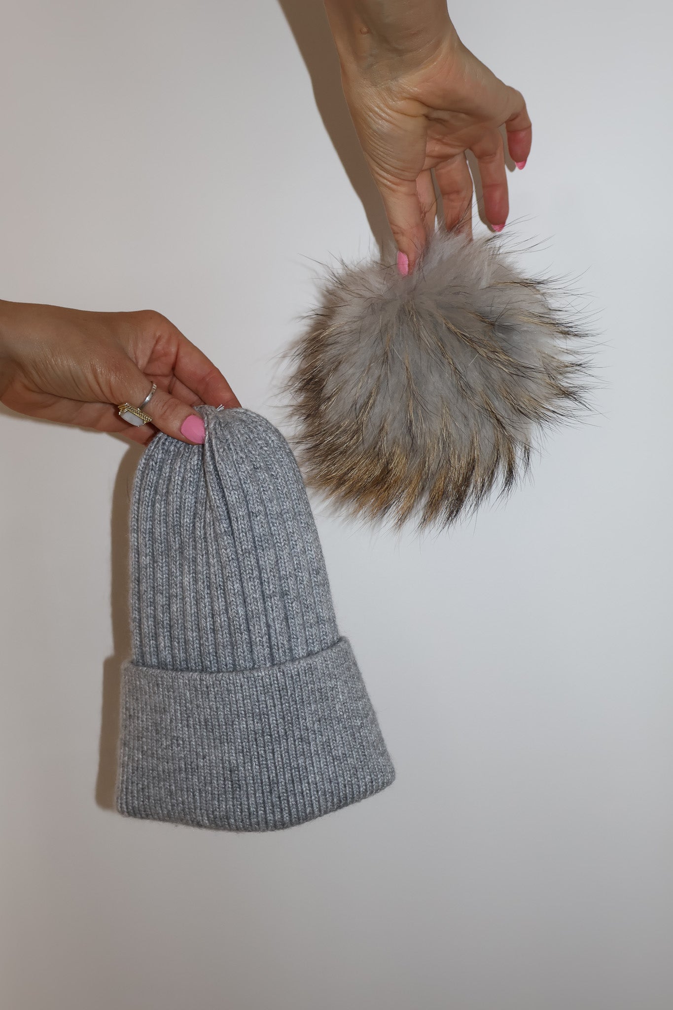 Our gorgeous Angora Grey Beanie with Pom Pom is a must-have winter accessory for those needing a little extra warmth in the cooler weather. The fur pom pom is detachable, so this angora grey beanie with pom pom can be worn with or without the pom pom - although we always recommend with!
