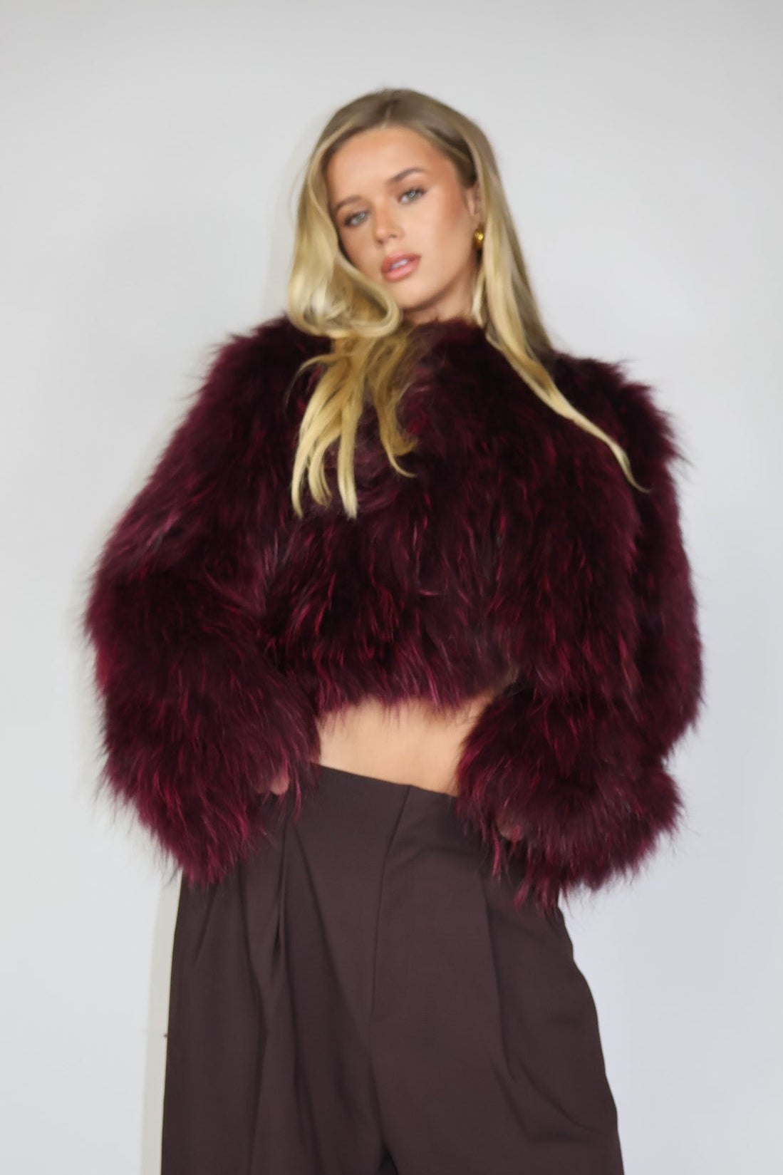 Rework classic codes of glamour in the divine Elodie Cropped Fur Jacket. Lavish in luxury and saturated in opulence, the Elodie Jacket boasts a cropped ultra femme silhouette designed to flatter all body shapes. This gorgeous style fits true to size, however the exaggerated appeal of the luxe raccoon fur leans towards a slightly oversized appearance. With that in mind, we guarantee you will love yourself sick in this beauty.