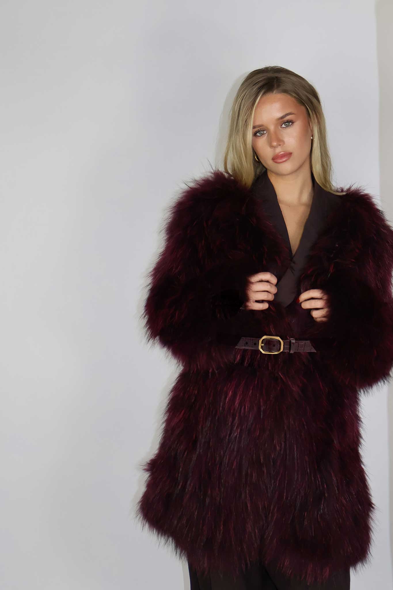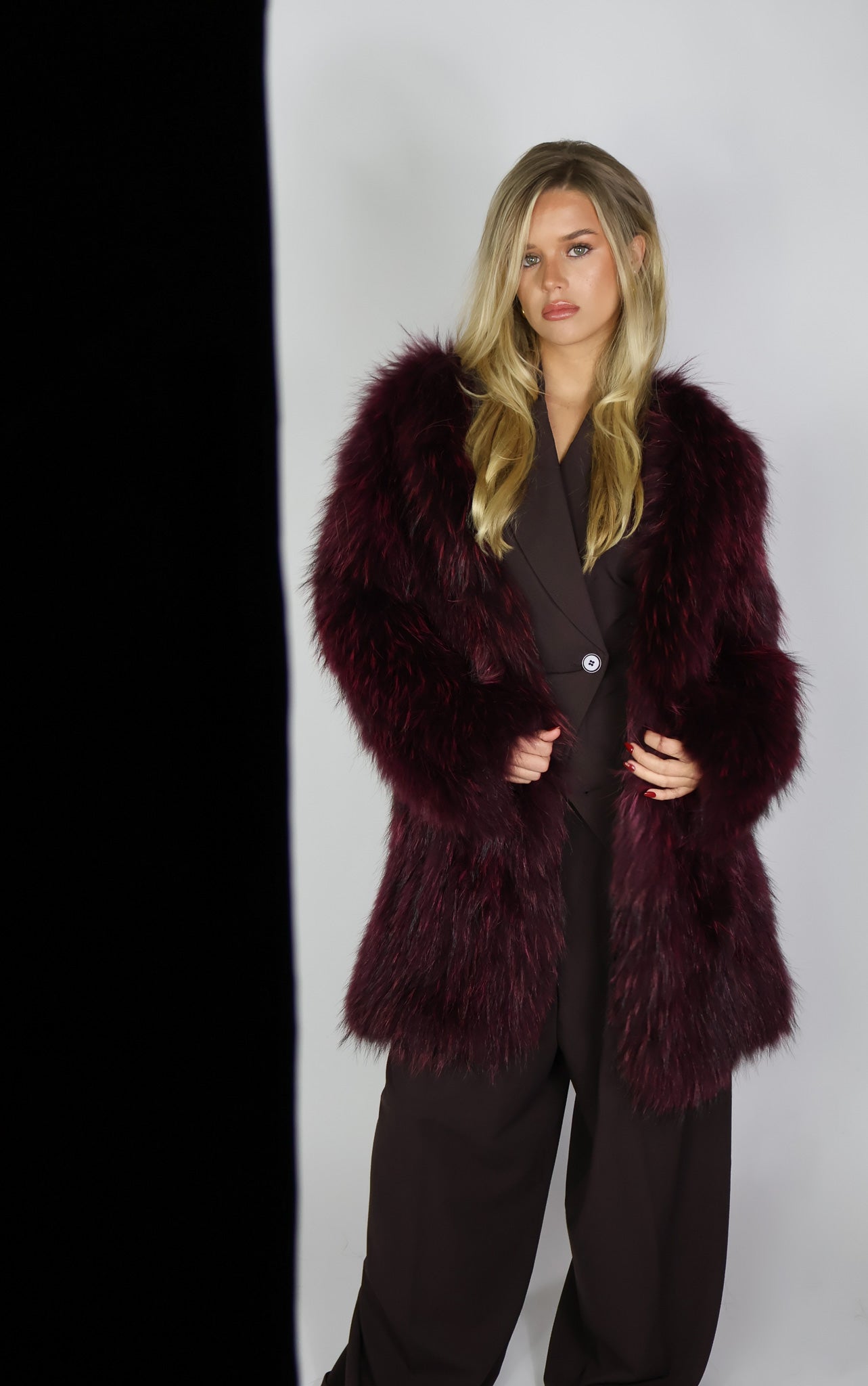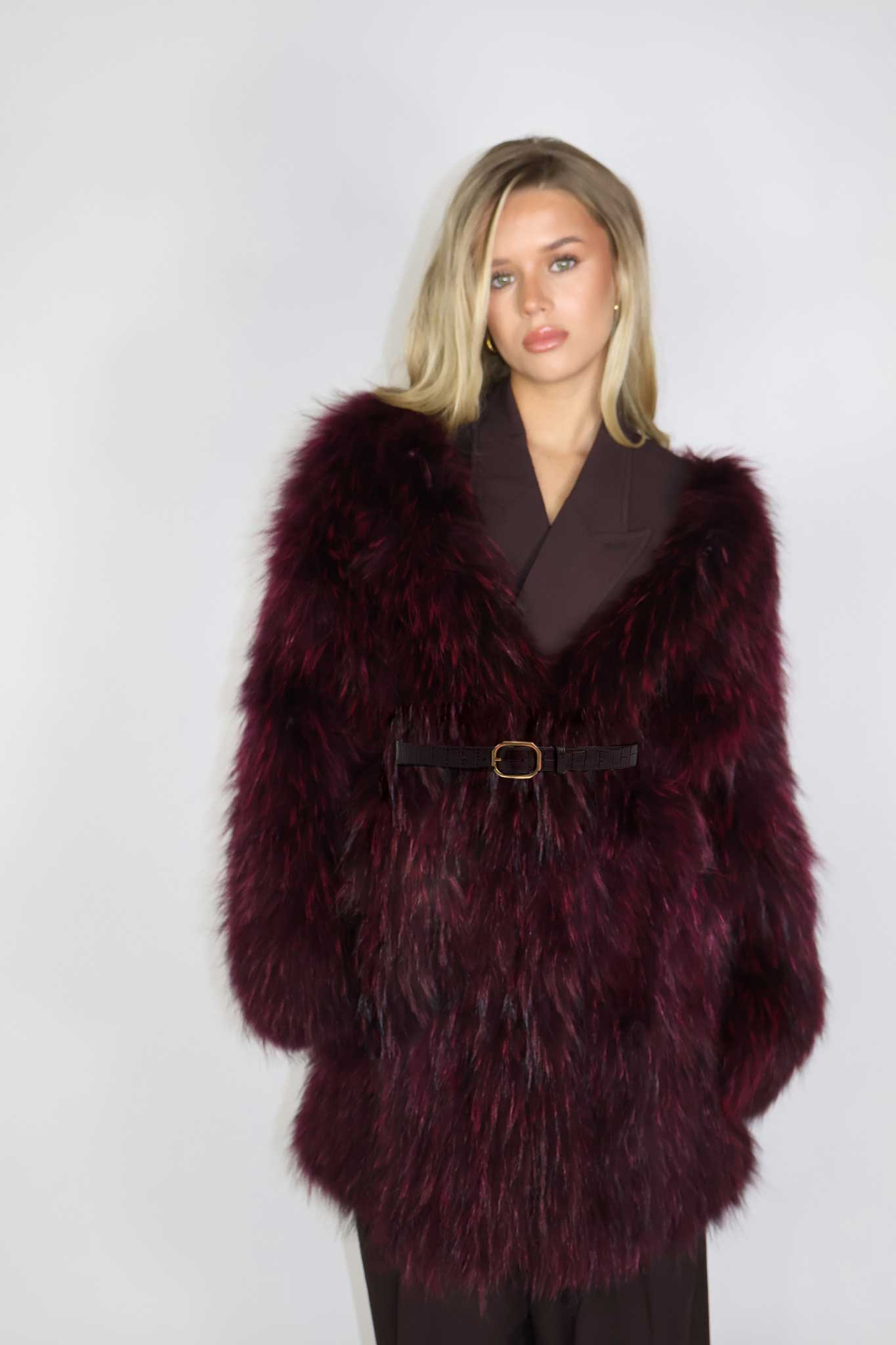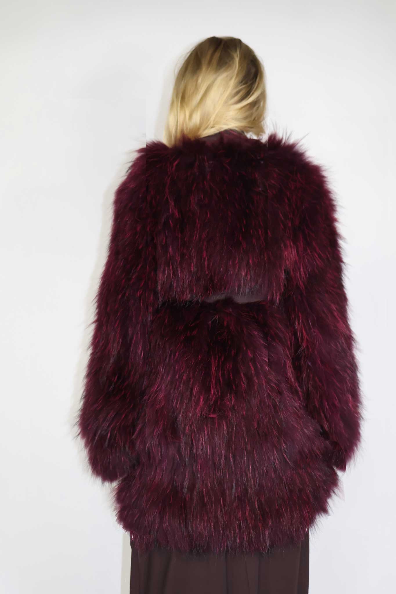 Keep in mind, the exaggerated appeal of the luxe raccoon fur leans towards an oversized appearance.