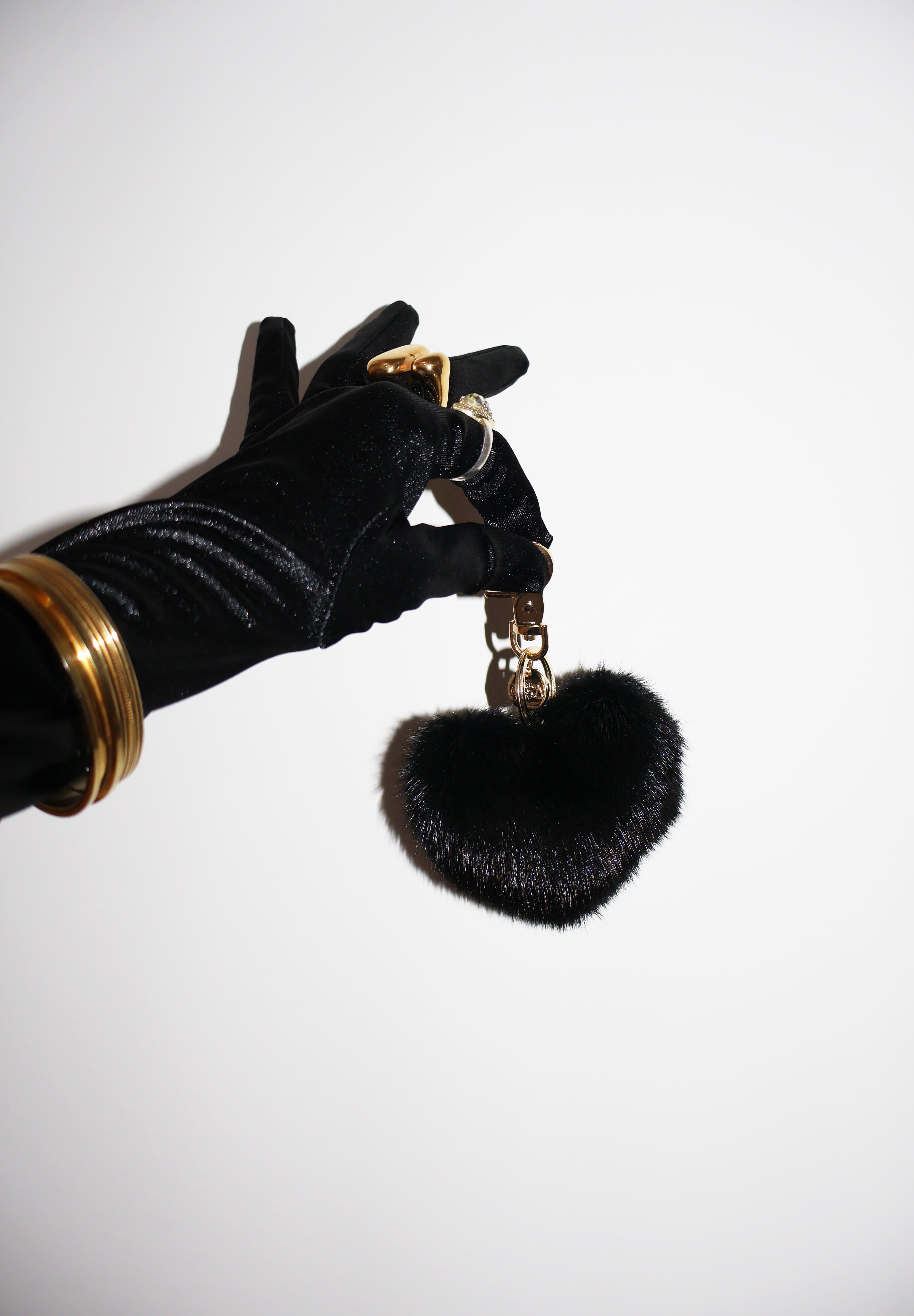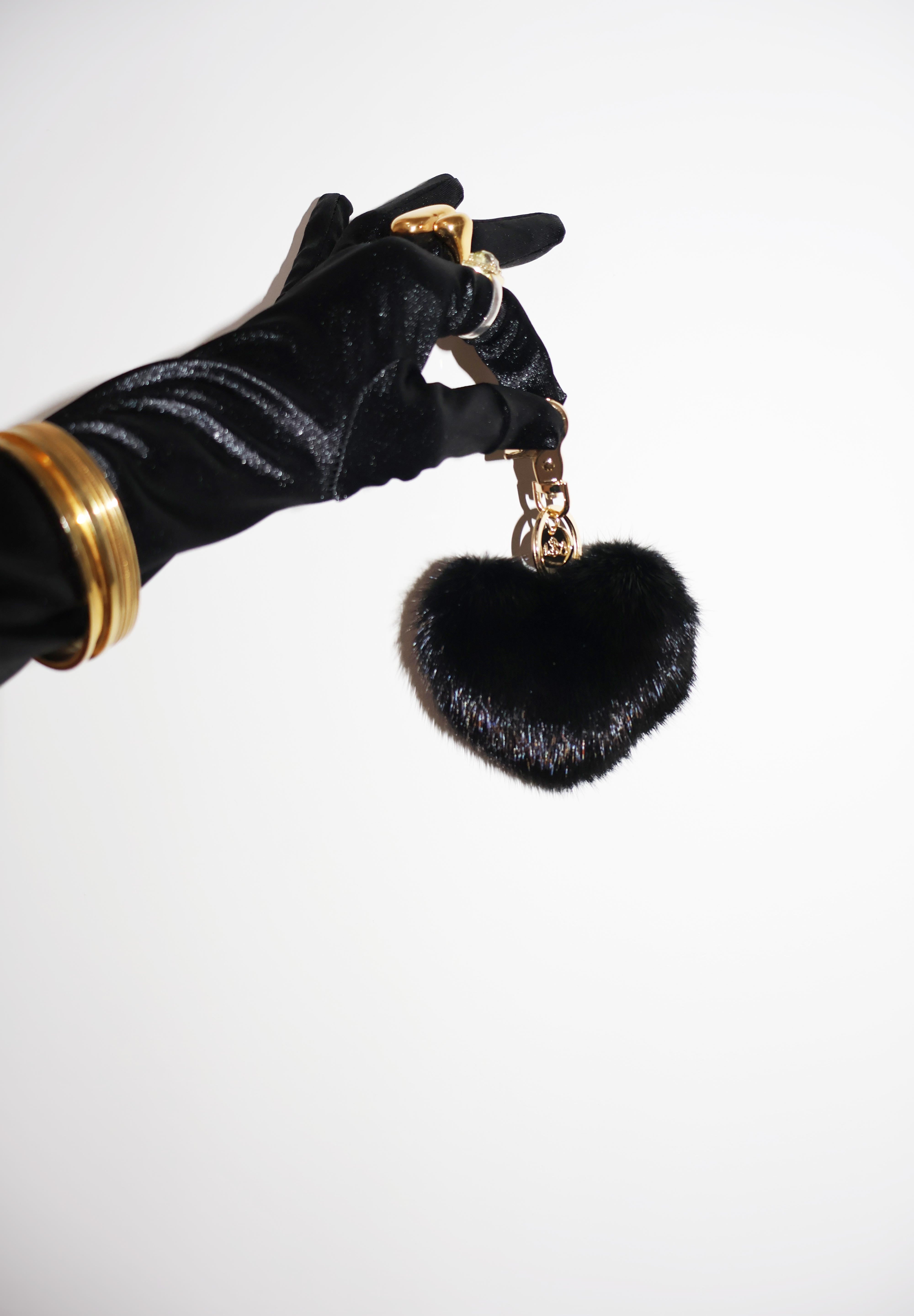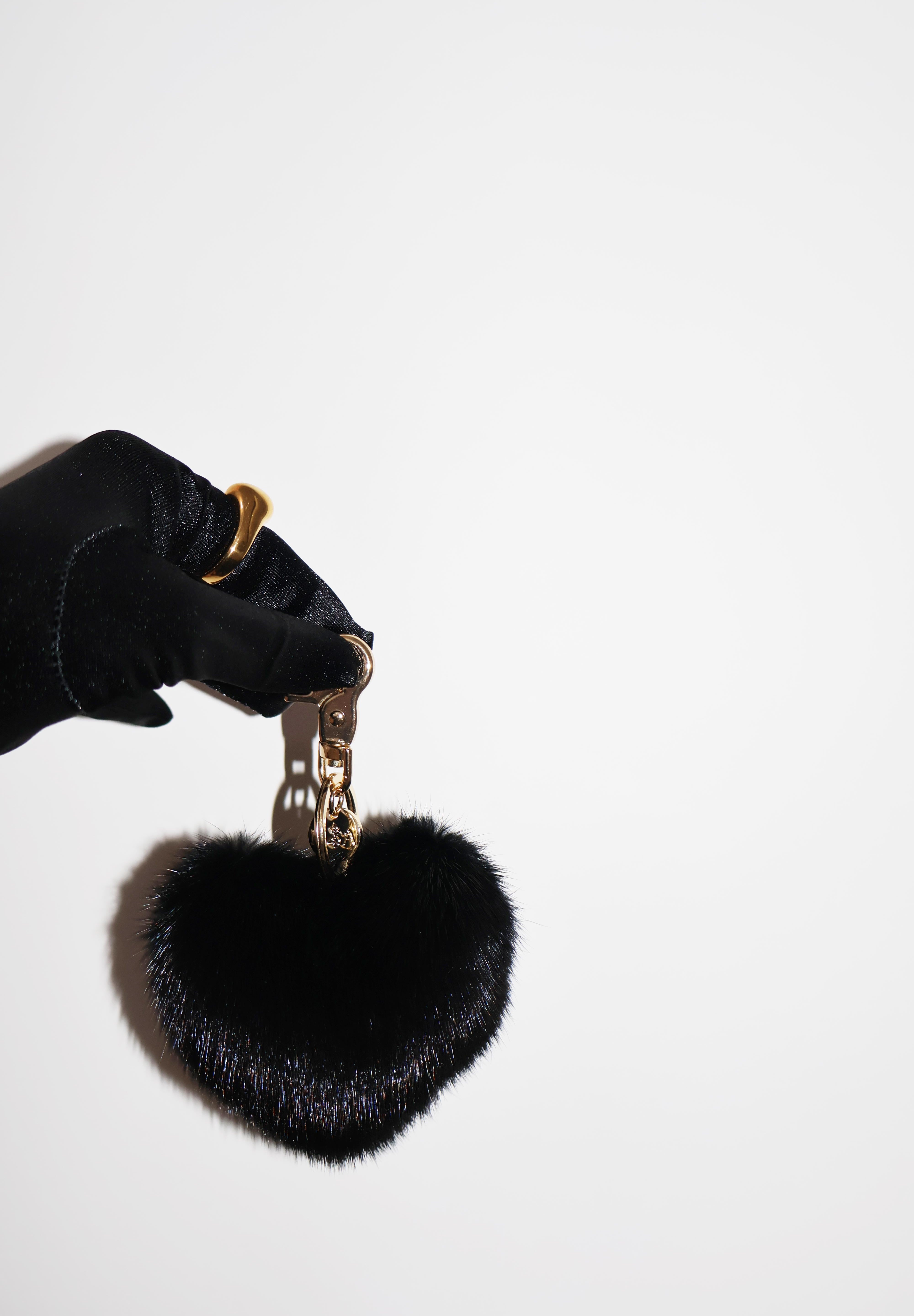 Wear your heart on your sleeve.. or at least on your keys! Dare to accessorise with our fun Fluffy Heart Keychain in Noir. Made from sumptuous fluffy fur and adorned with statement M&A branded gold hardware, perfect for adding a touch of fab to your keys or bag. You'll never lose your keys again!