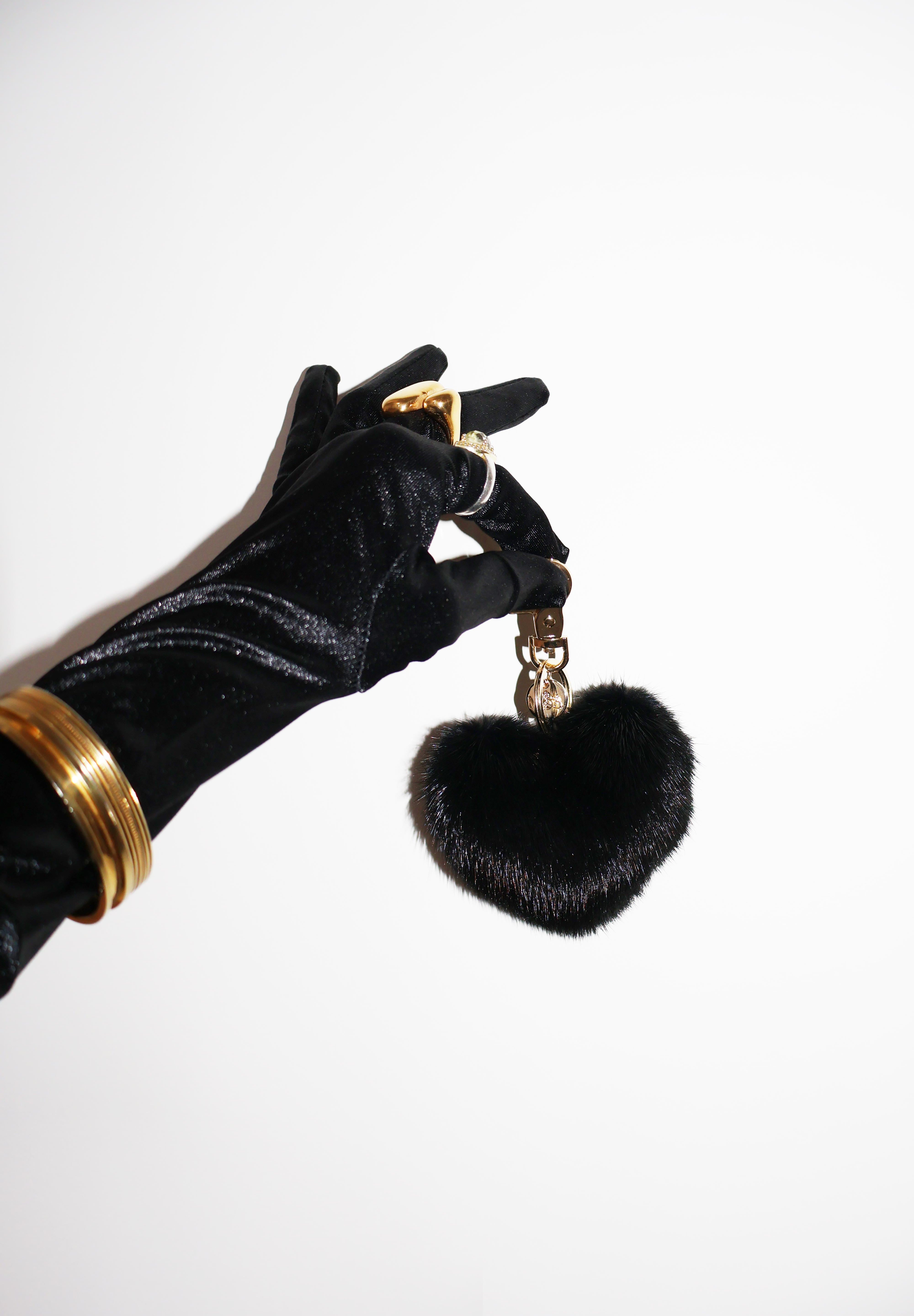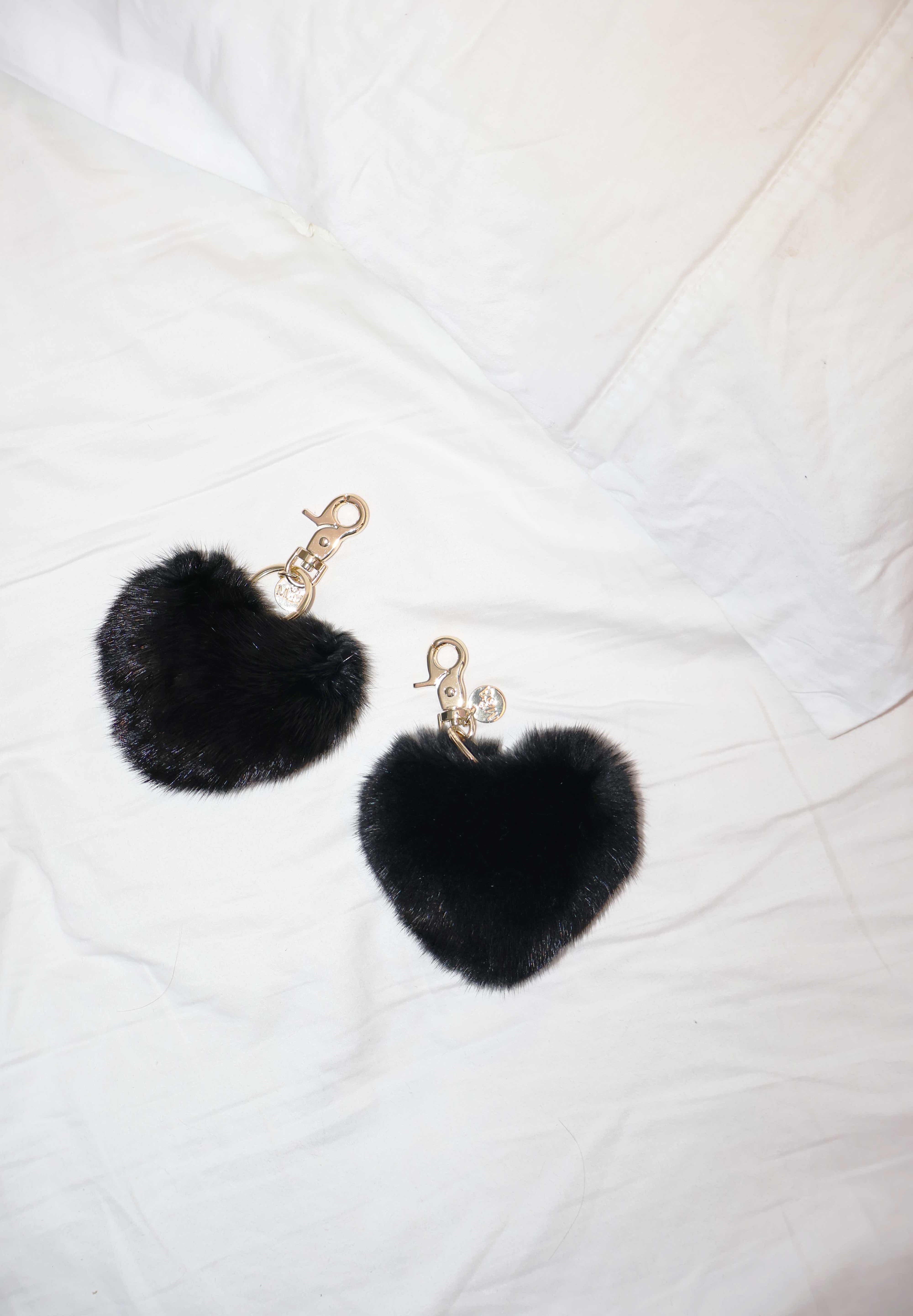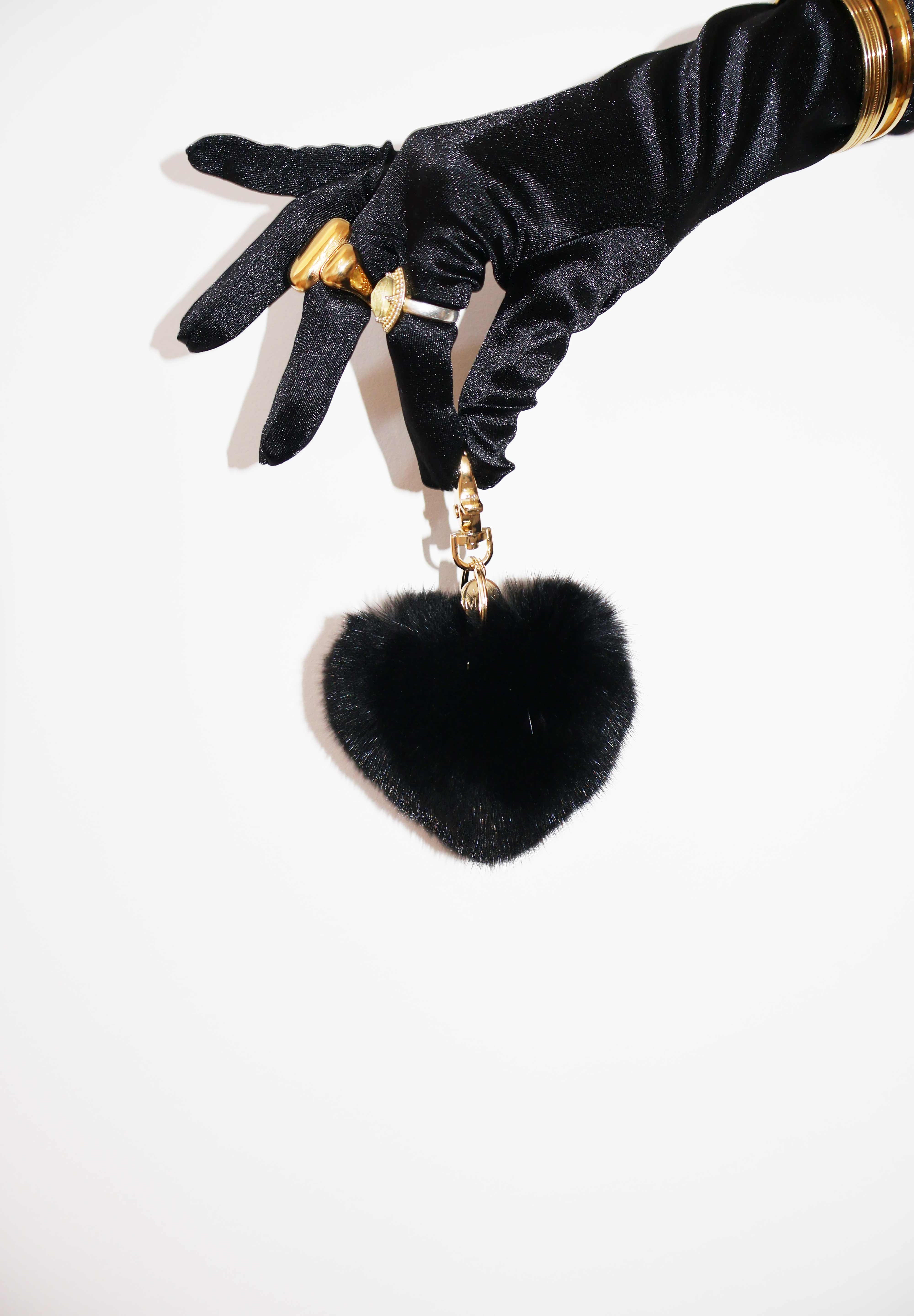 Wear your heart on your sleeve.. or at least on your keys! Dare to accessorise with our fun Fluffy Heart Keychain in Noir. Made from sumptuous fluffy fur and adorned with statement M&A branded gold hardware, perfect for adding a touch of fab to your keys or bag. You'll never lose your keys again!
