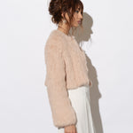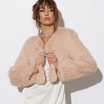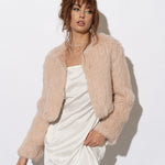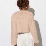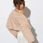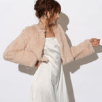 The Laci Long Sleeve Fur Jacket is ideal for brides who are seeking additional coverage on their wedding day. The cropped jacket style is available in either ¾ length of full length sleeves and the body of the jacket is shorter in length so it is designed to complement bridal gown, without compromising any shape or detail. This jacket is made from knitted rabbit fur and is lined with fur on the inside making it incredibly warm and luxurious.