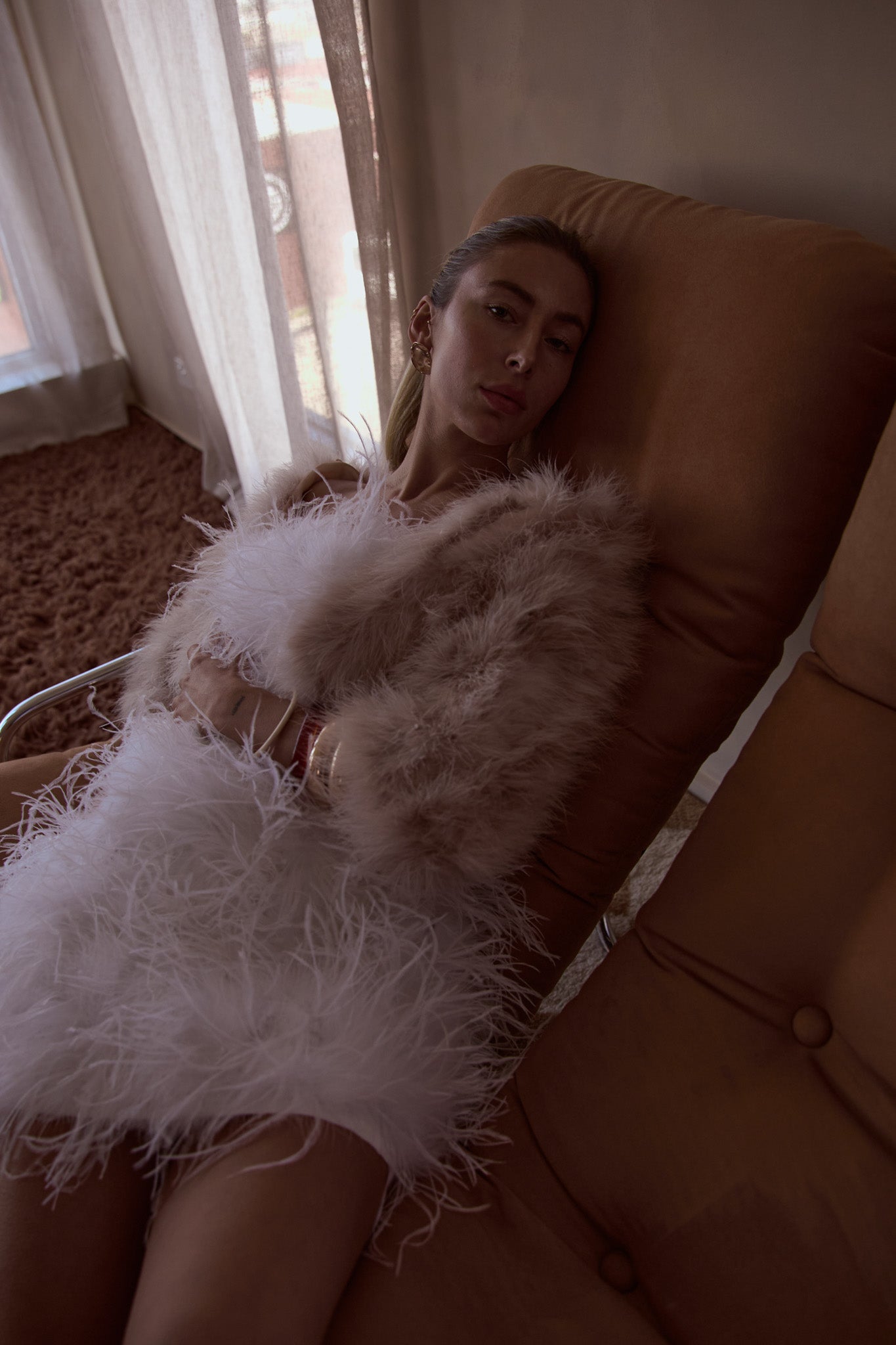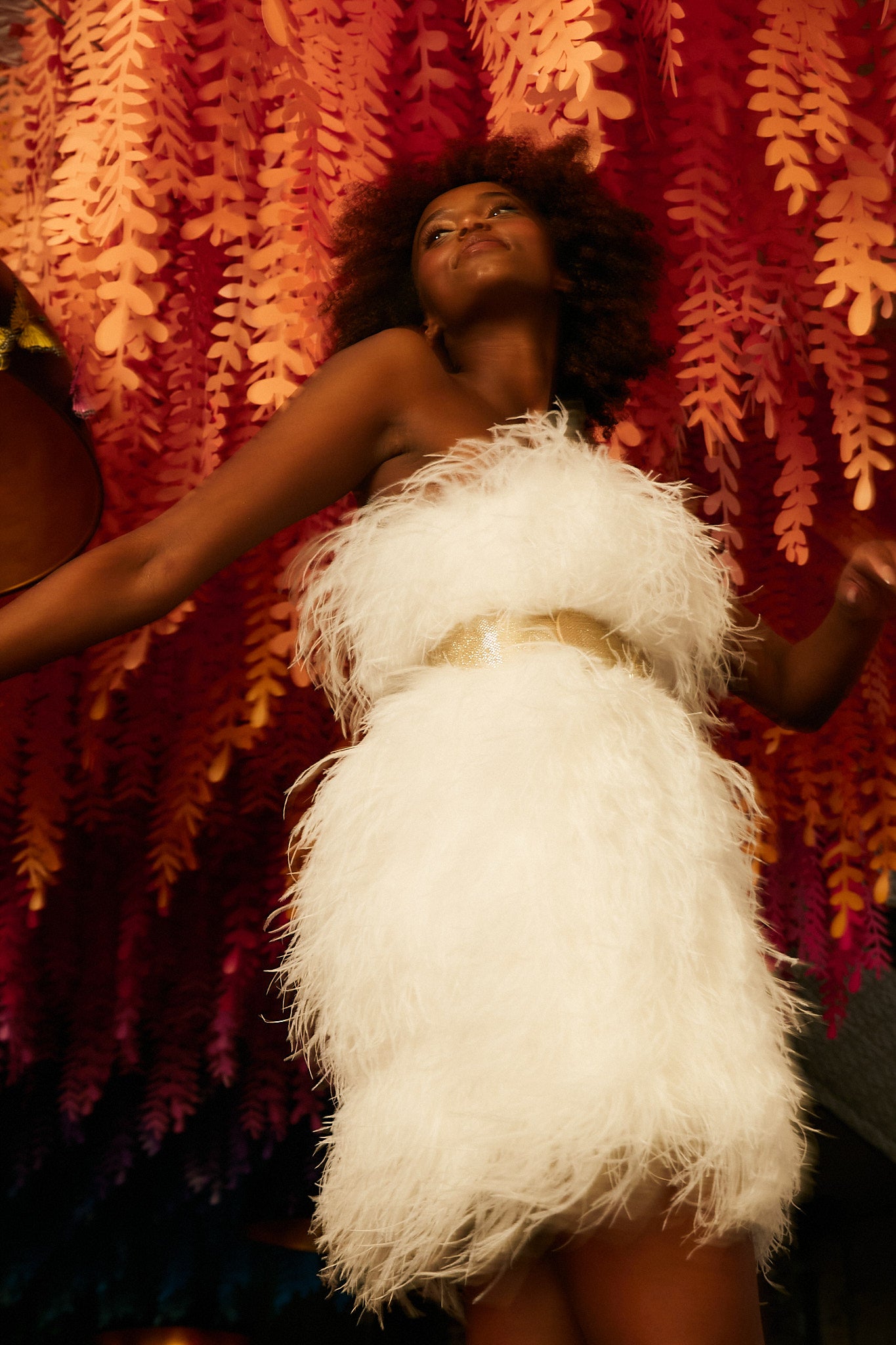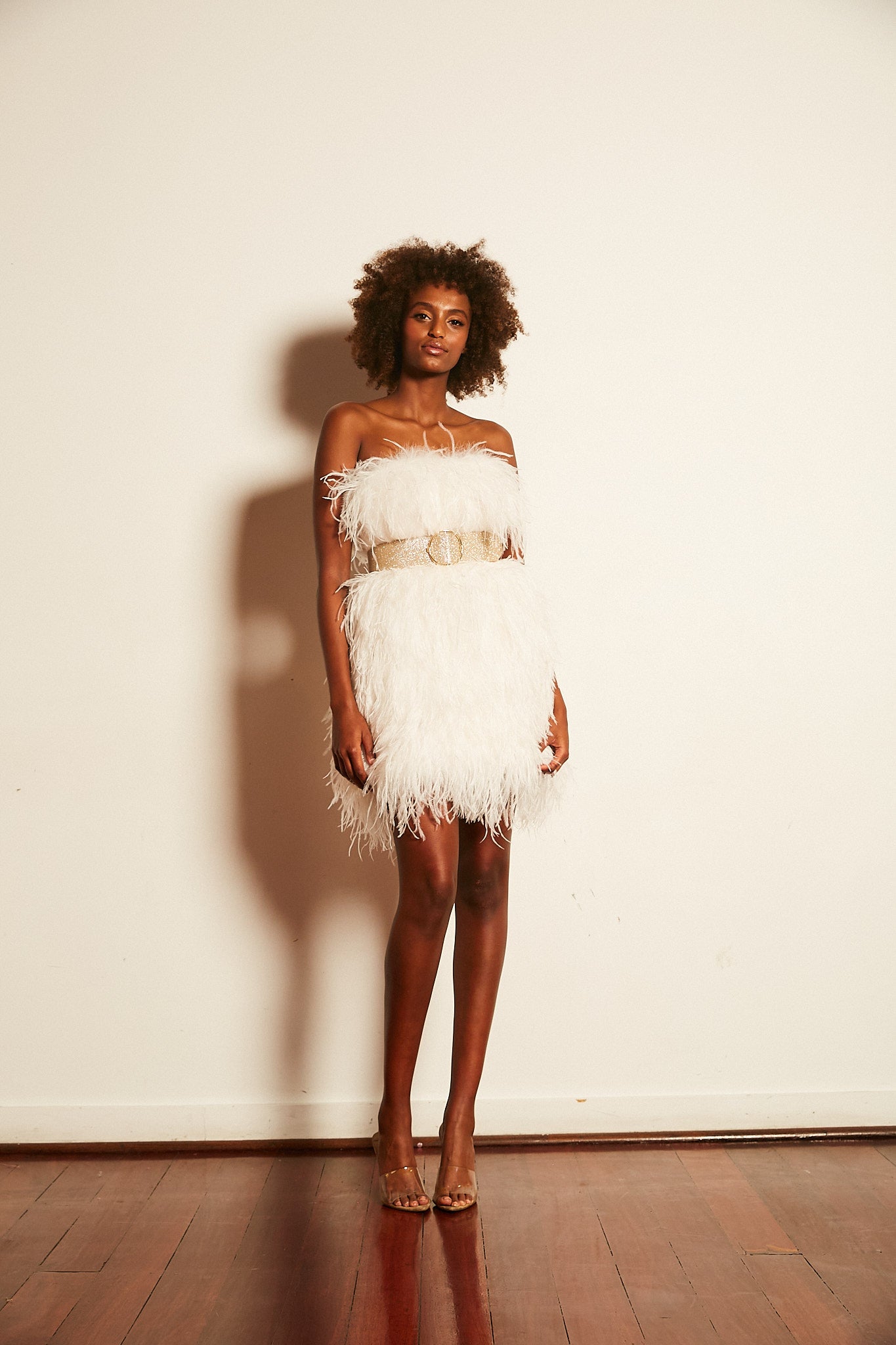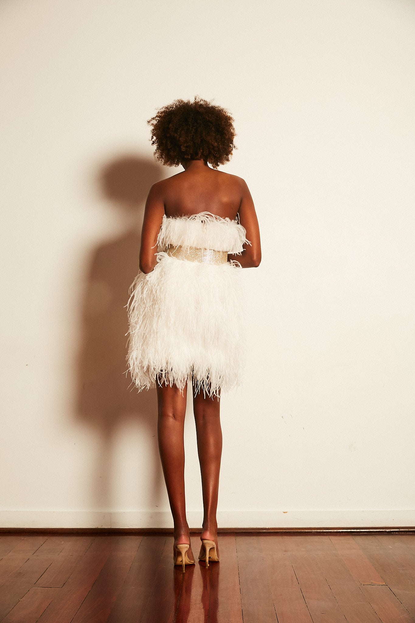 Save the last dance.. And STEAL THE SHOW in this Ostrich feather dress.