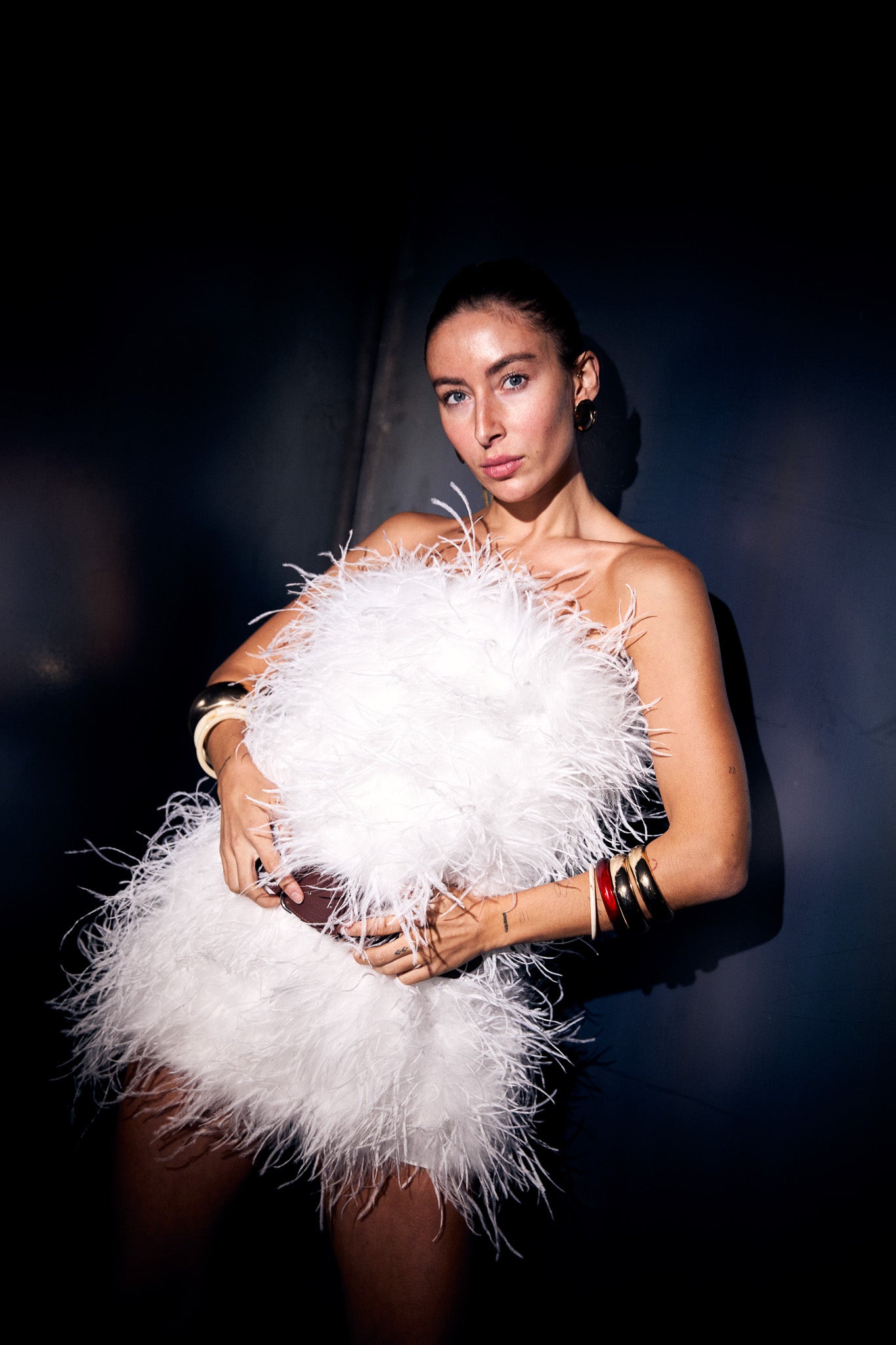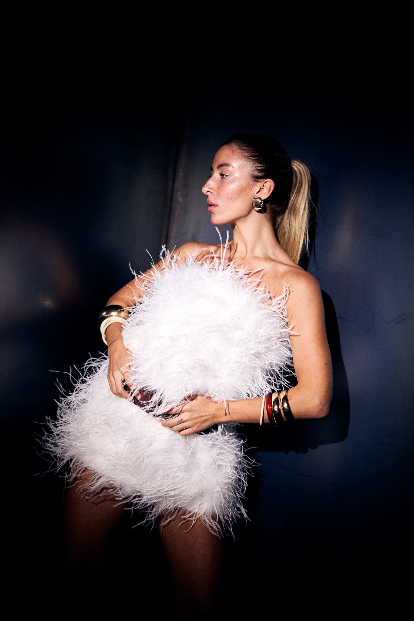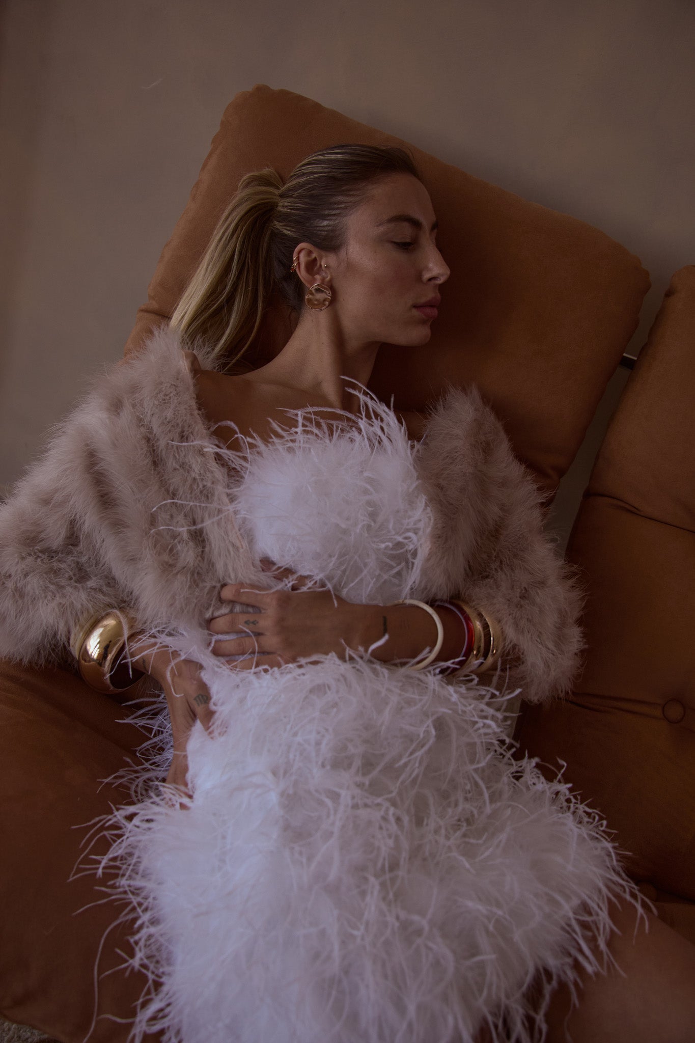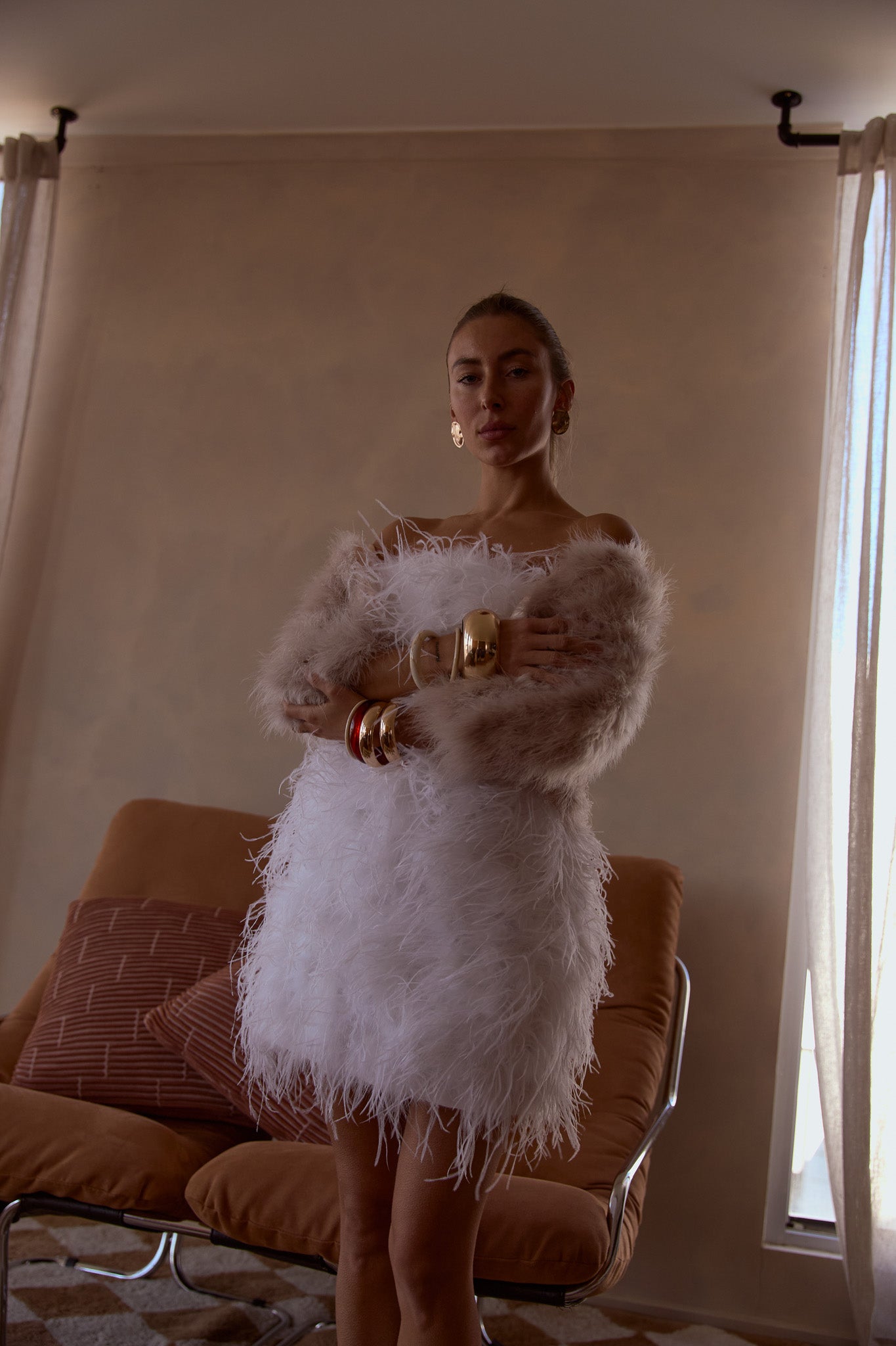 Save the last dance.. And STEAL THE SHOW in this Ostrich feather dress.