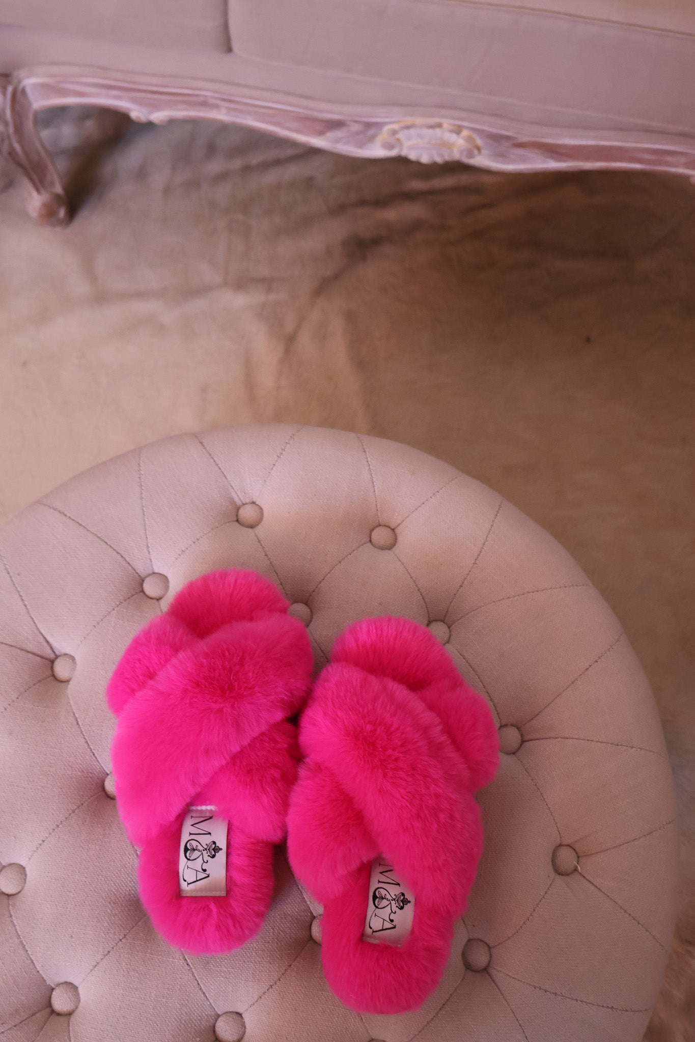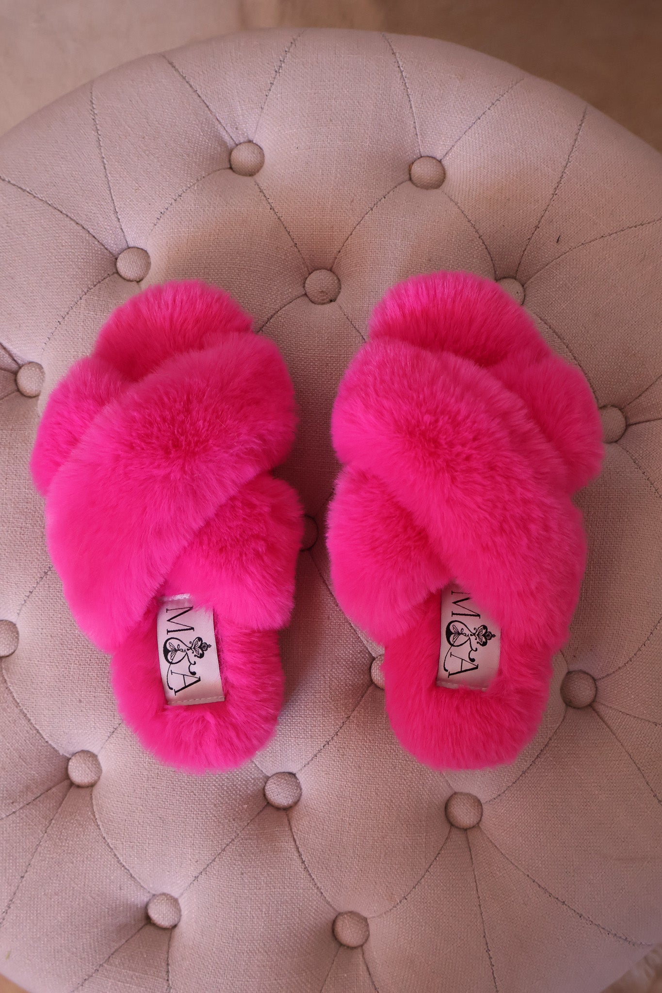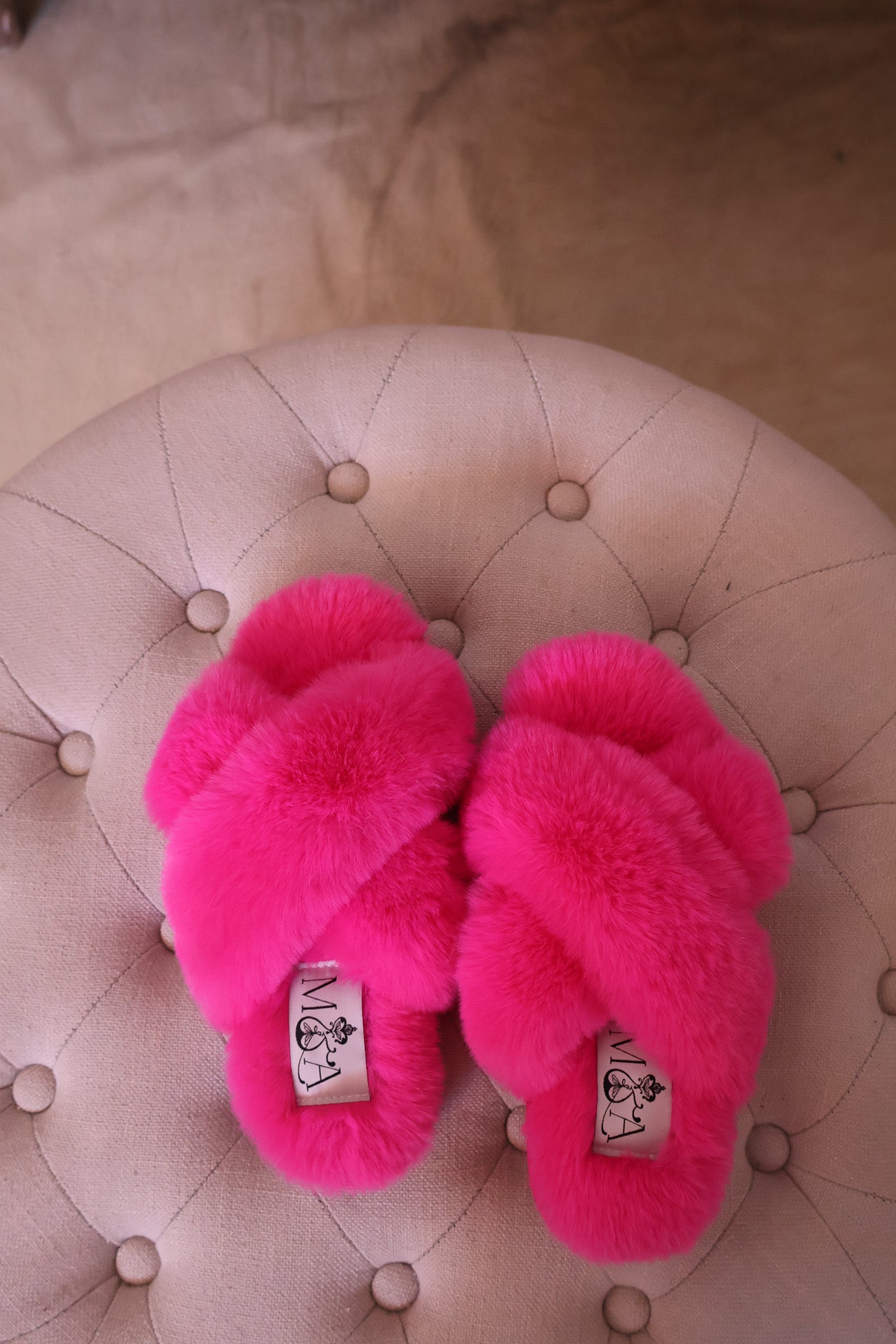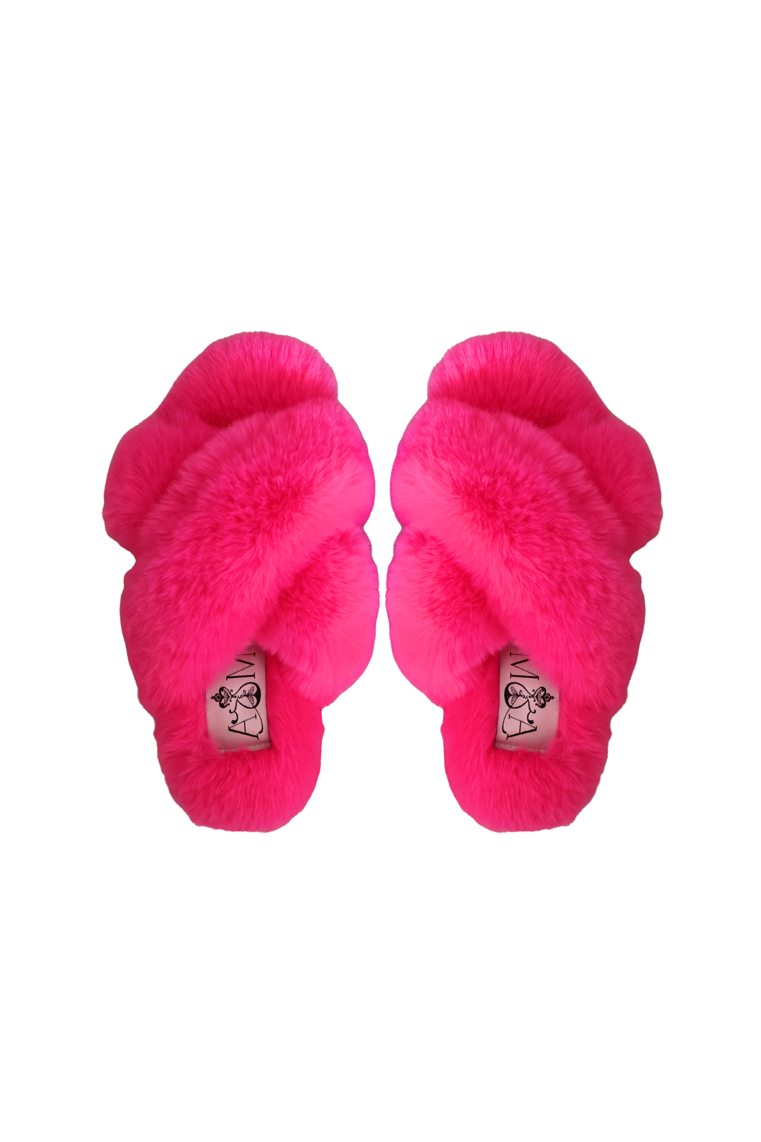 Say goodbye to boring slippers and hello to hot pink happiness! These bold, hot pink fluffy slippers are the ultimate statement piece for your feet. With irresistibly soft criss-cross straps that hug your toes like a cozy cloud, you’ll feel like you’re walking on sunshine (literally).