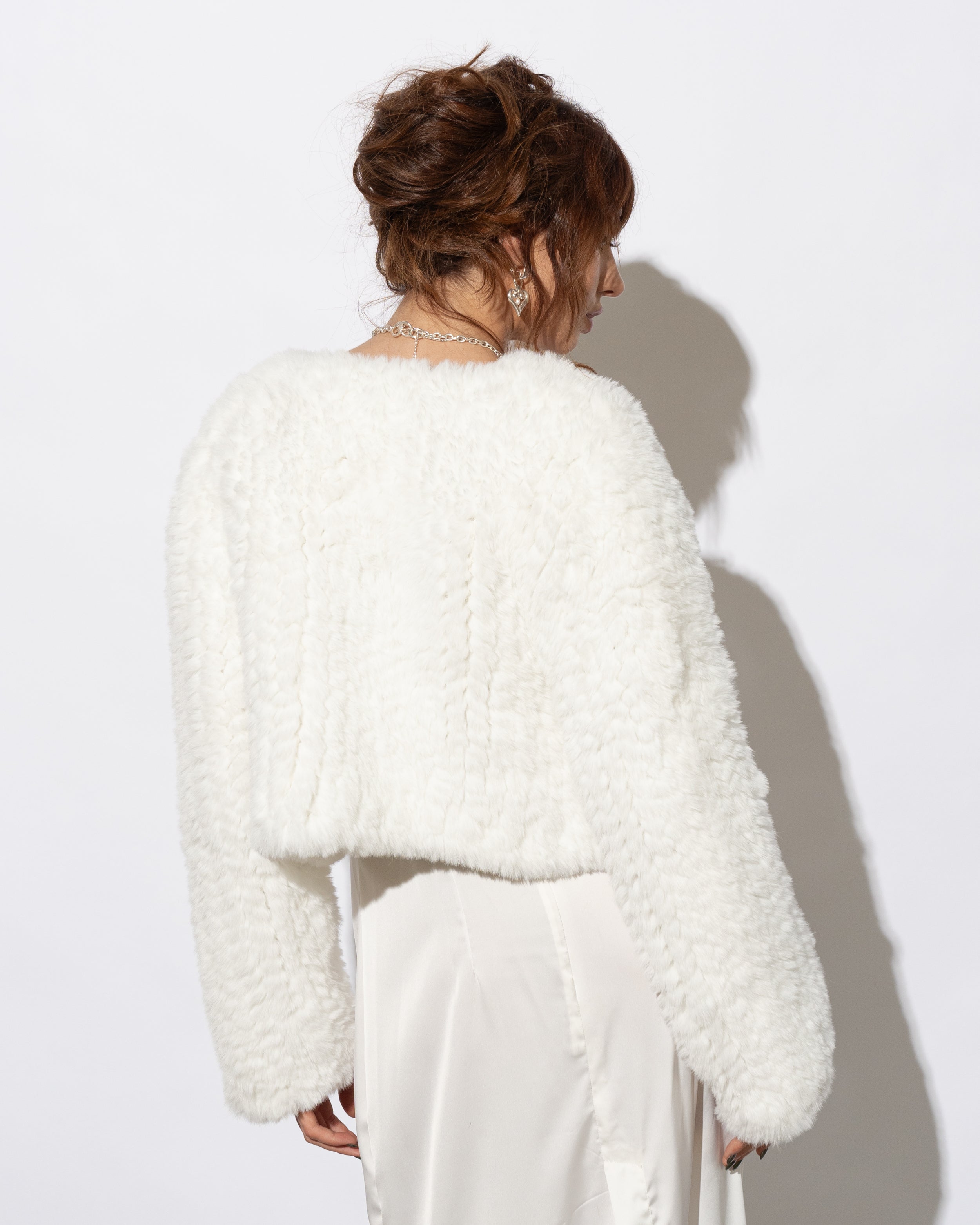 Draping beautifully over your frame, the Macie Faux Fur Jacket adds an element of distinguished glamour as it effortlessly contours your silhouette. Every Macie Faux Fur Jacket is knitted by hand, creating a completely unique garment with no two jackets identical.