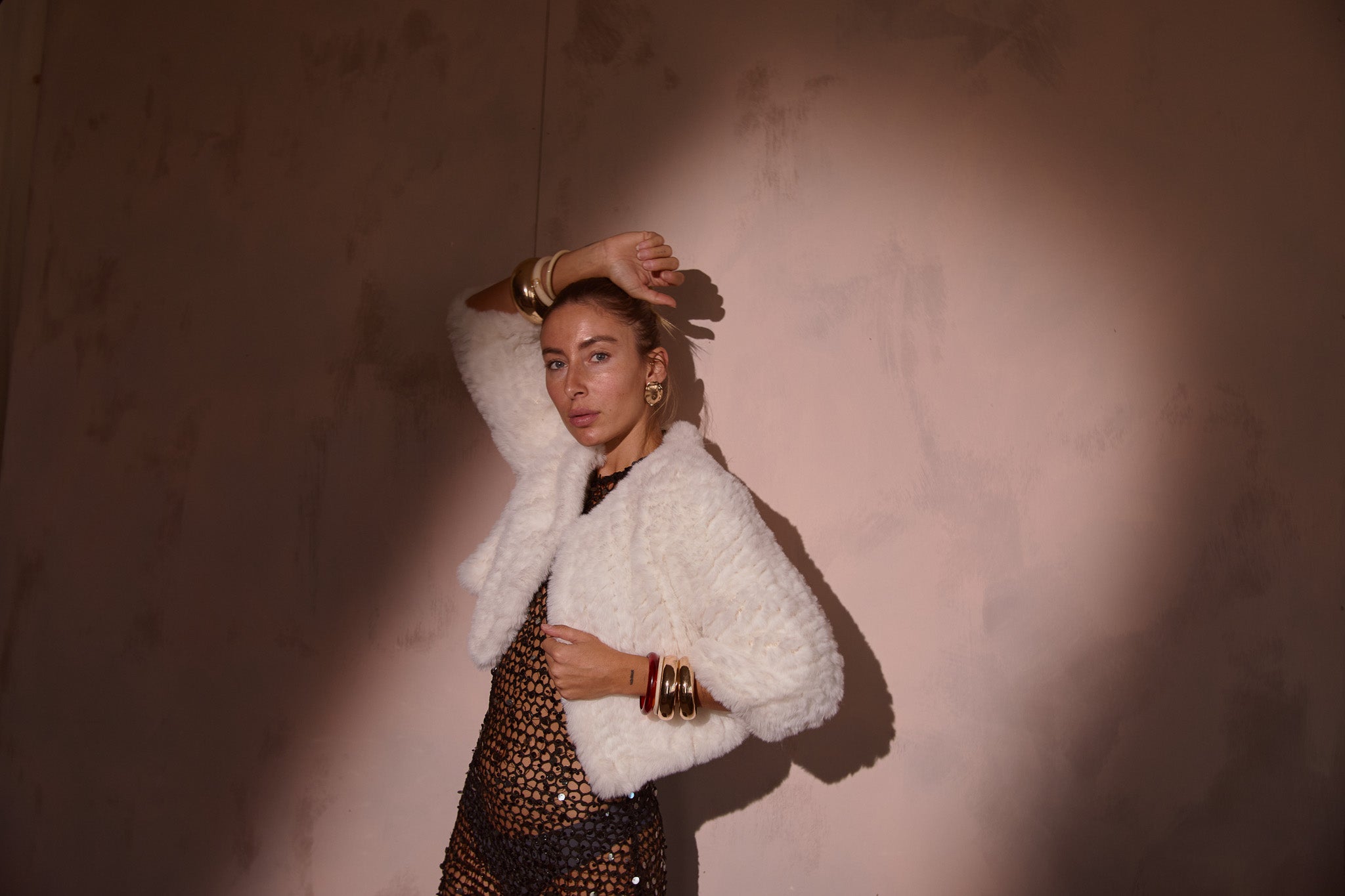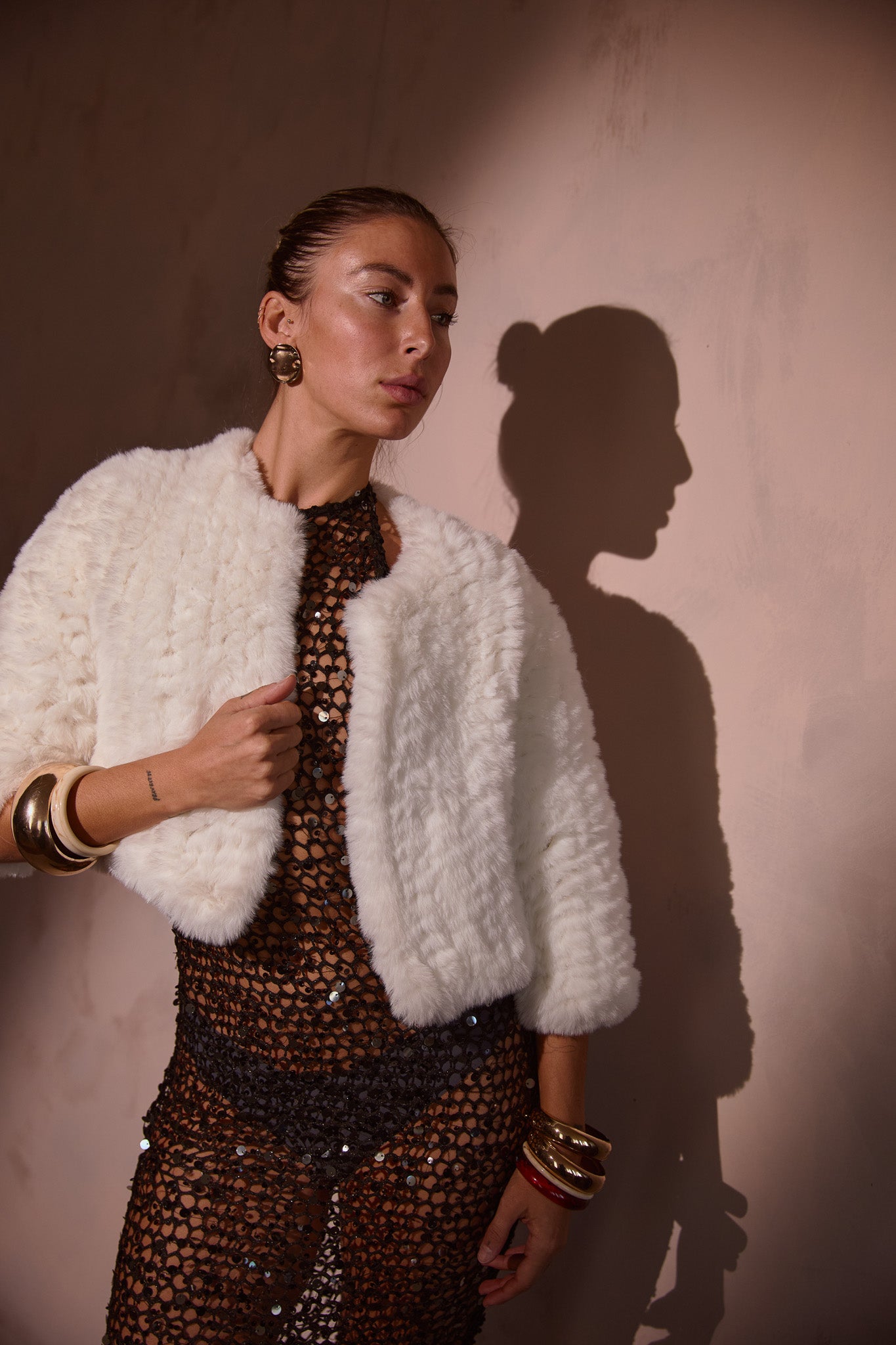 Draping beautifully over your frame, the Macie Faux Fur Jacket adds an element of distinguished glamour as it effortlessly contours your silhouette. Every Macie Faux Fur Jacket is knitted by hand, creating a completely unique garment with no two jackets identical.