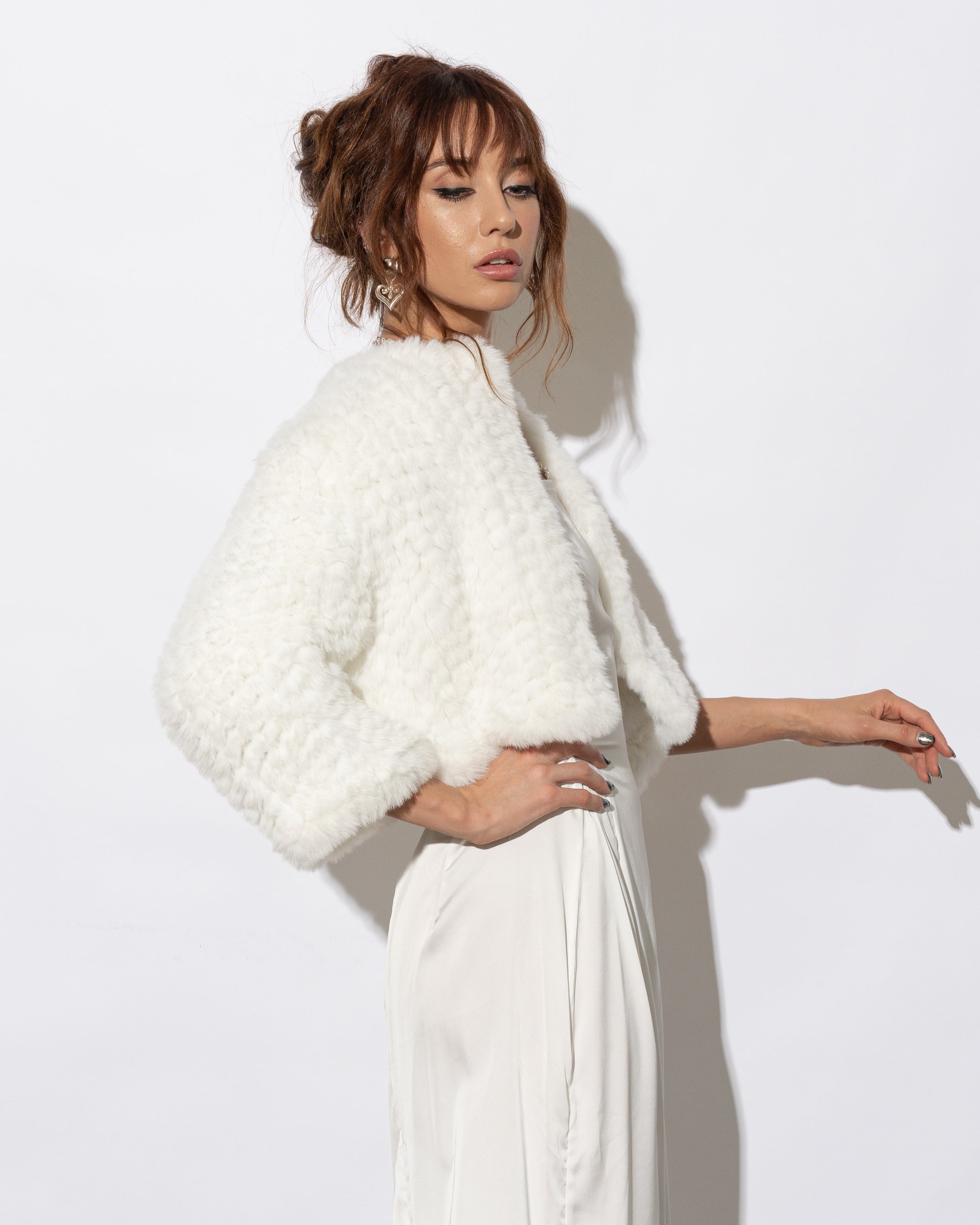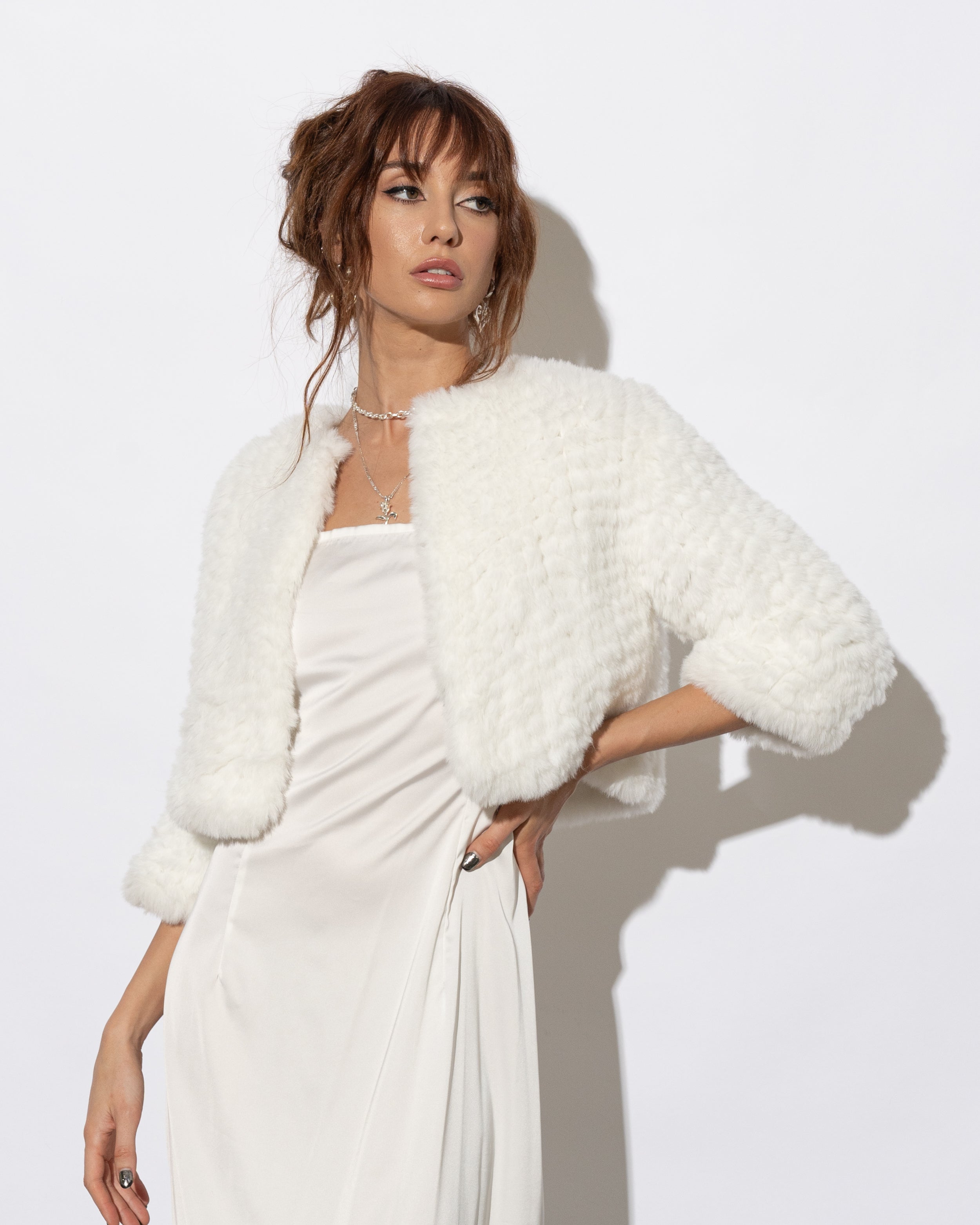 Macie Faux 3/4 Jacket in Snow - Mode & Affaire