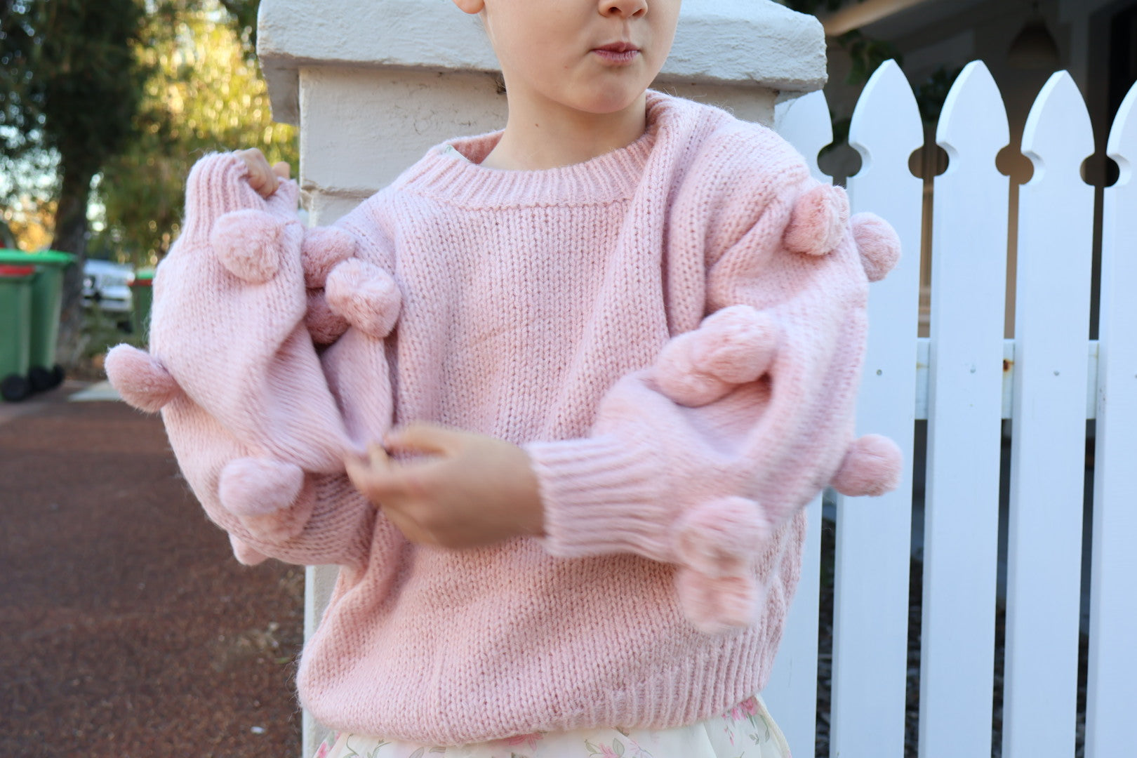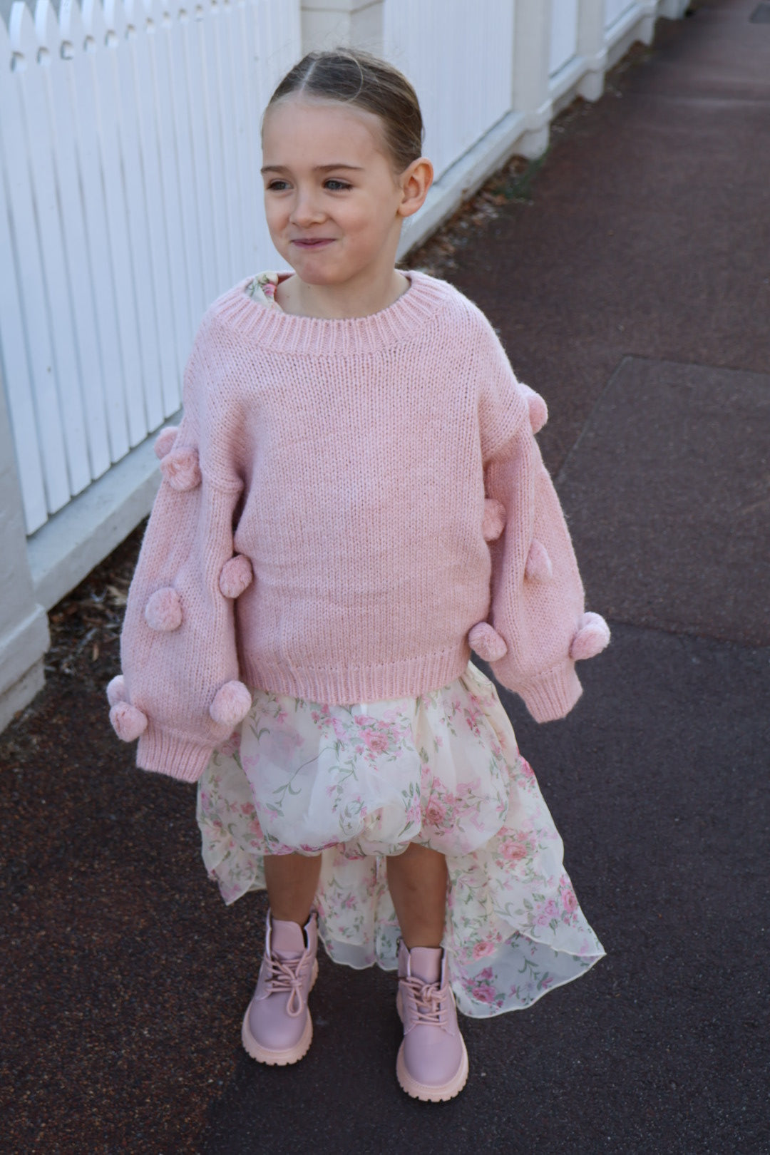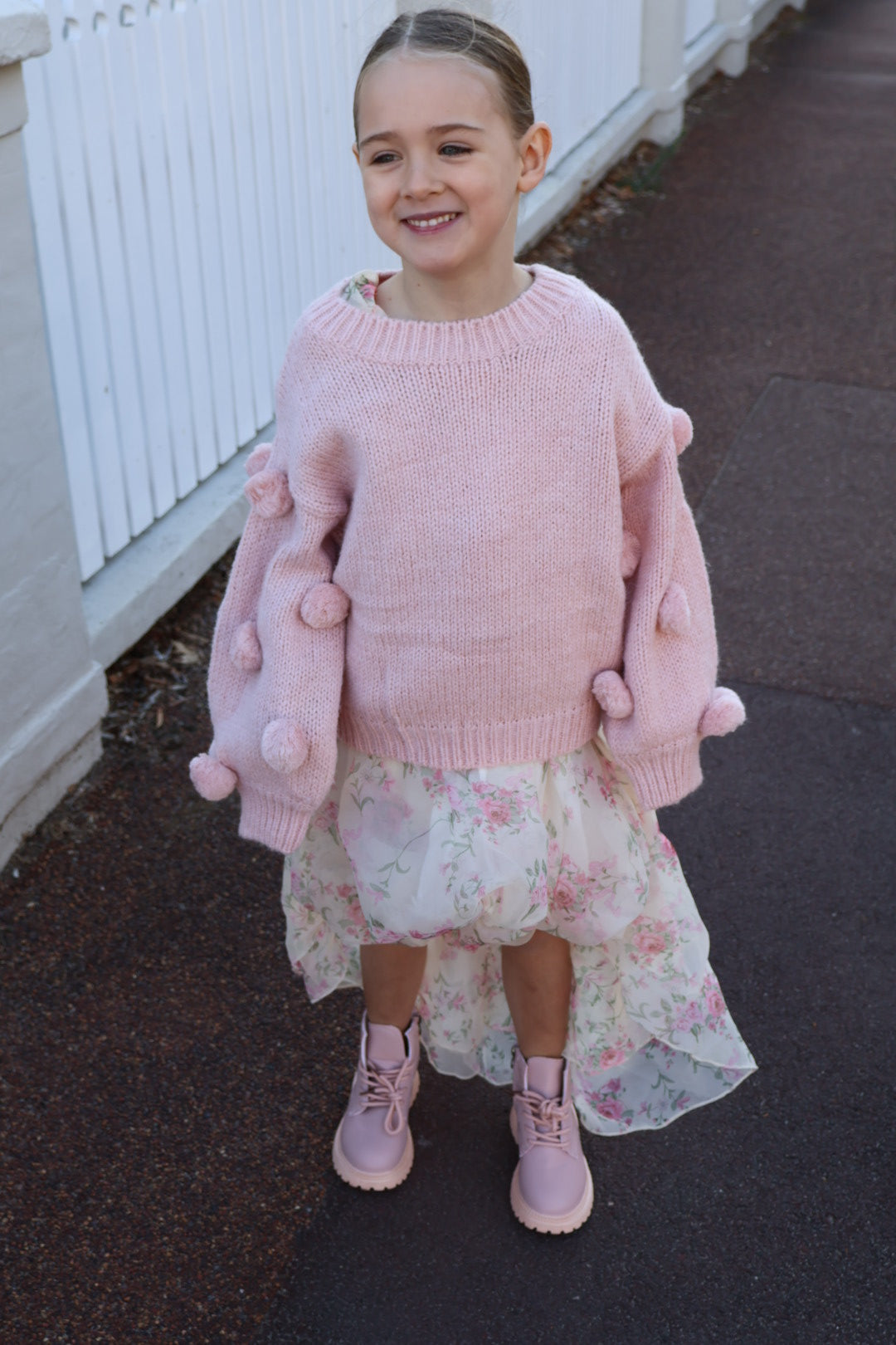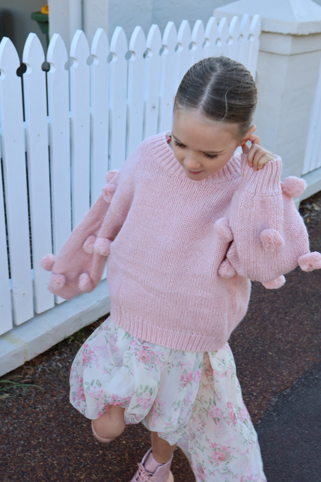 Masie Pom Pom Jumper For Girls in Dusty Pink