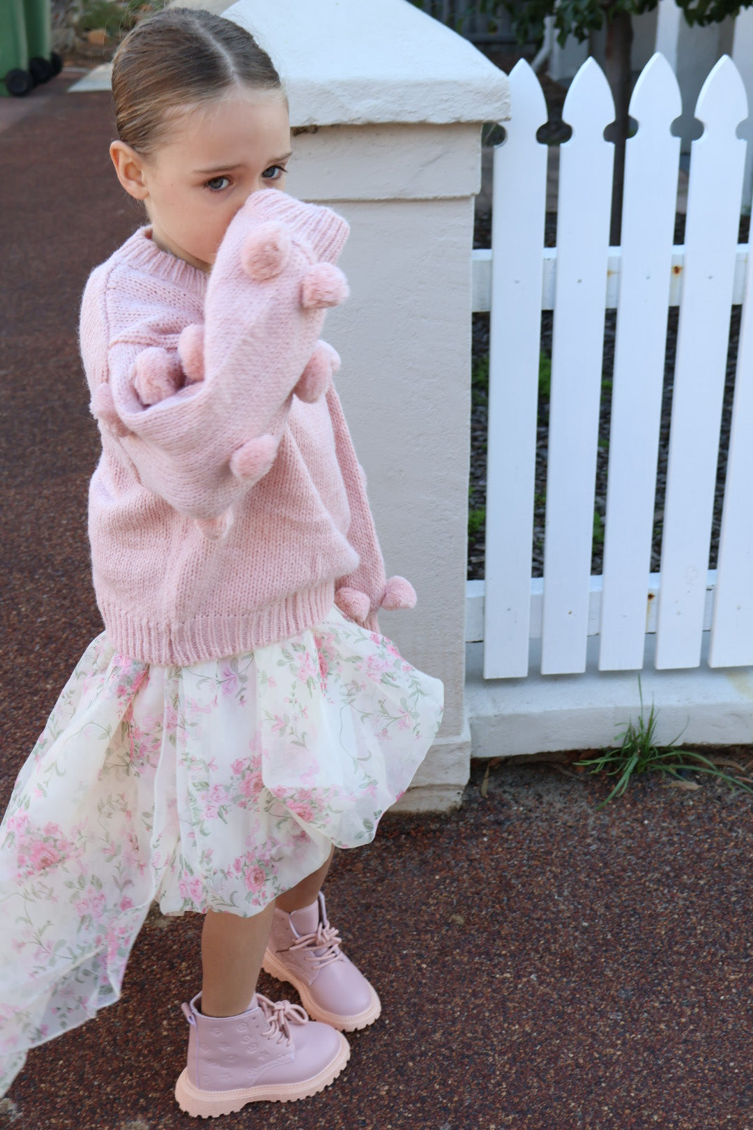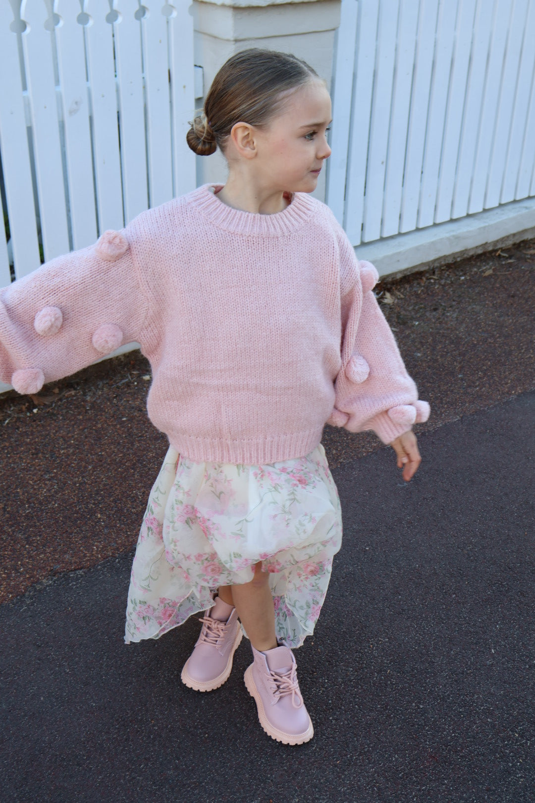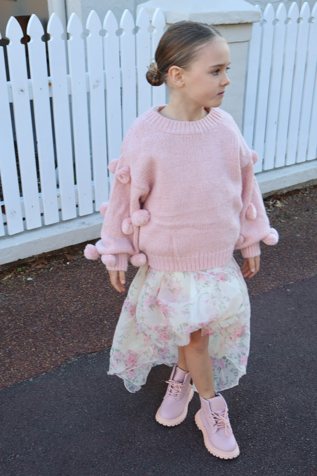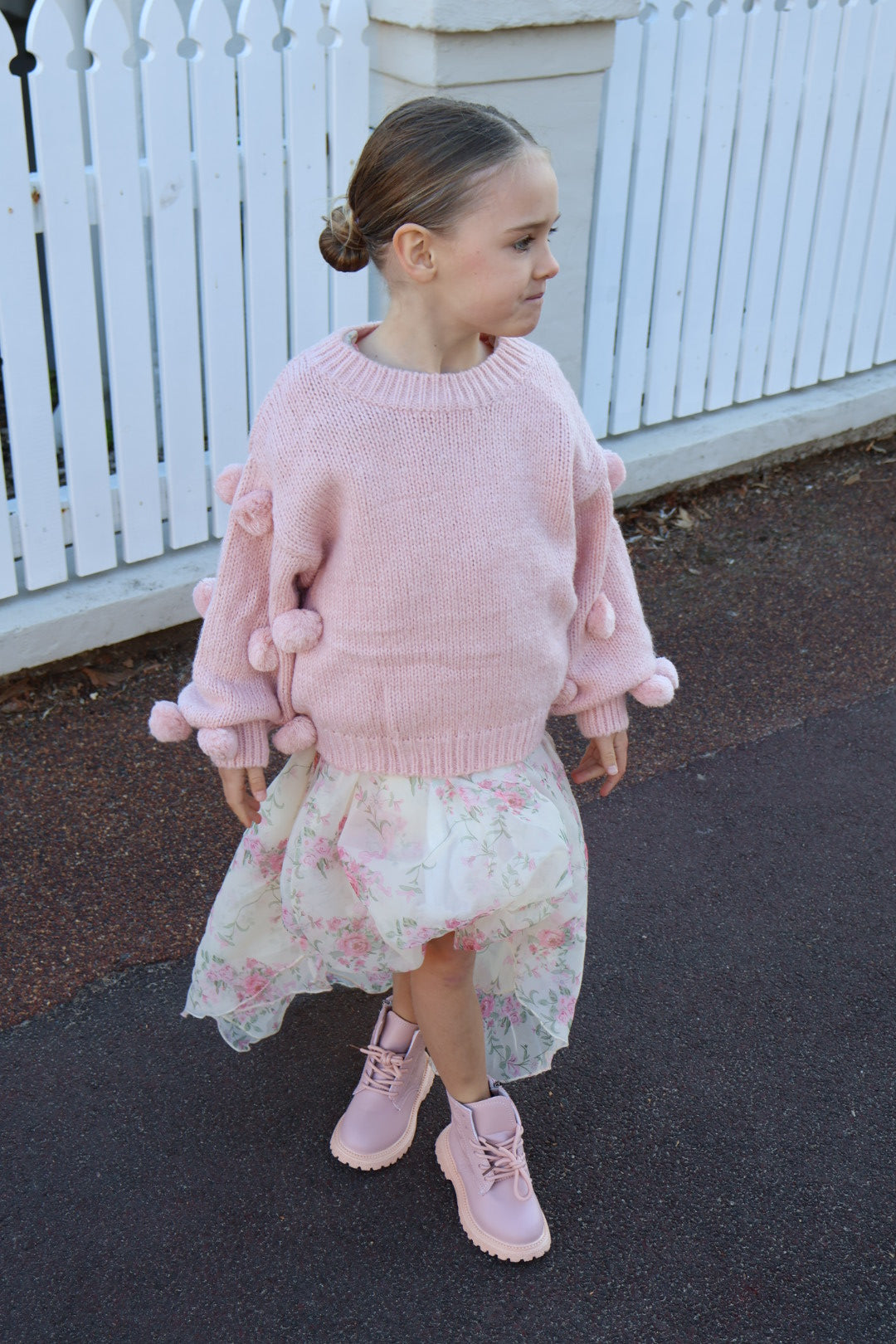 Masie Pom Pom Jumper For Girls in Dusty Pink