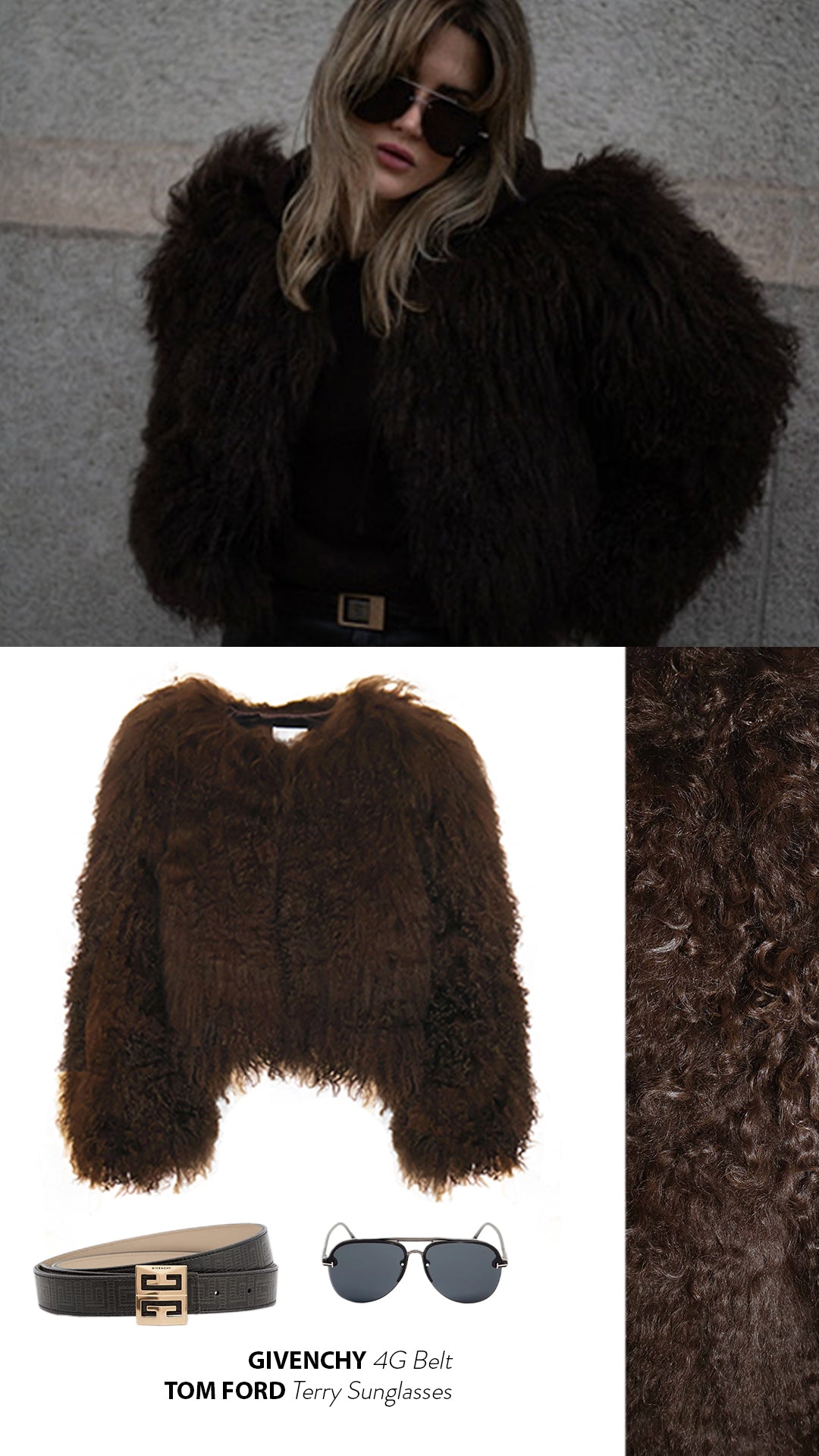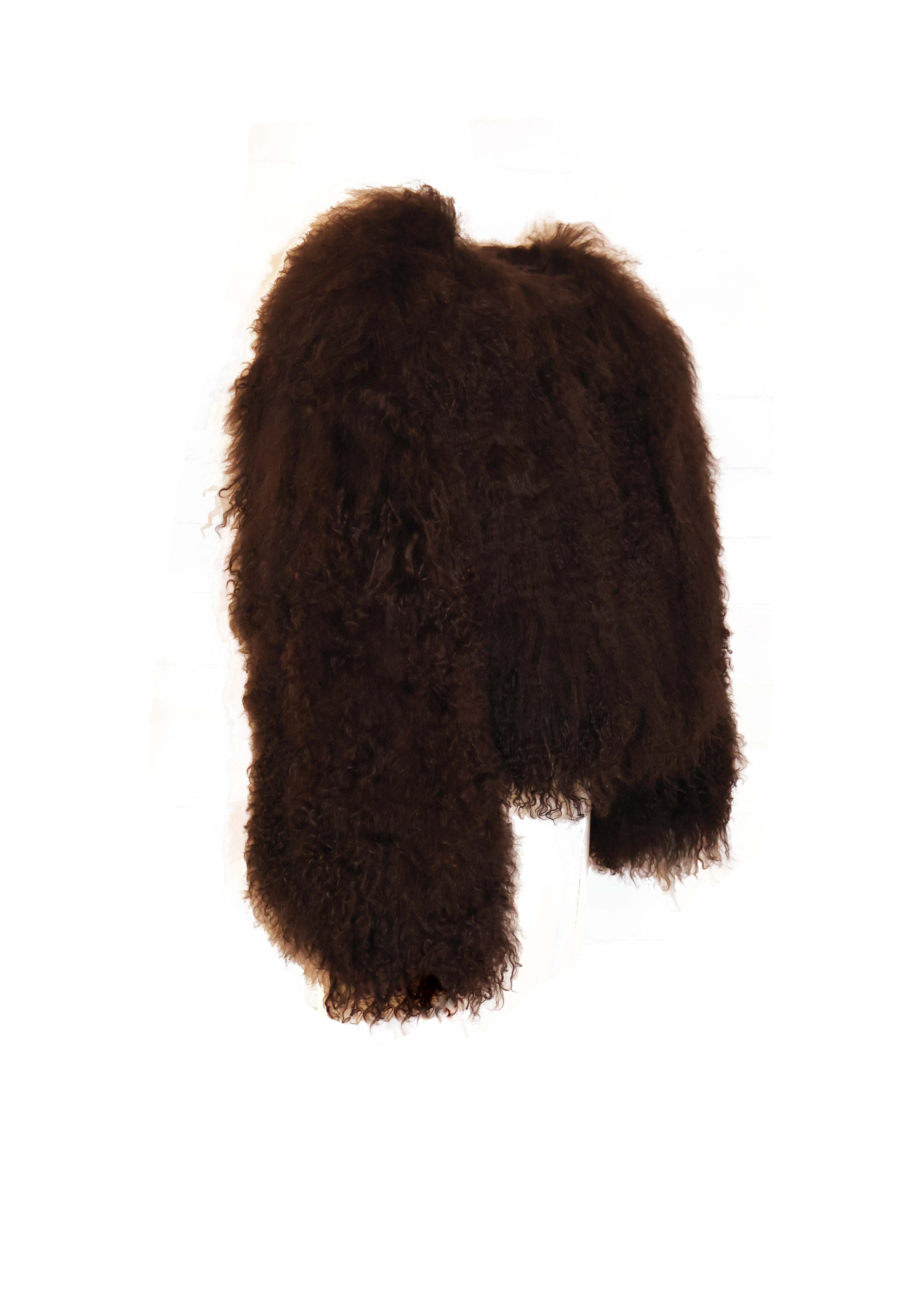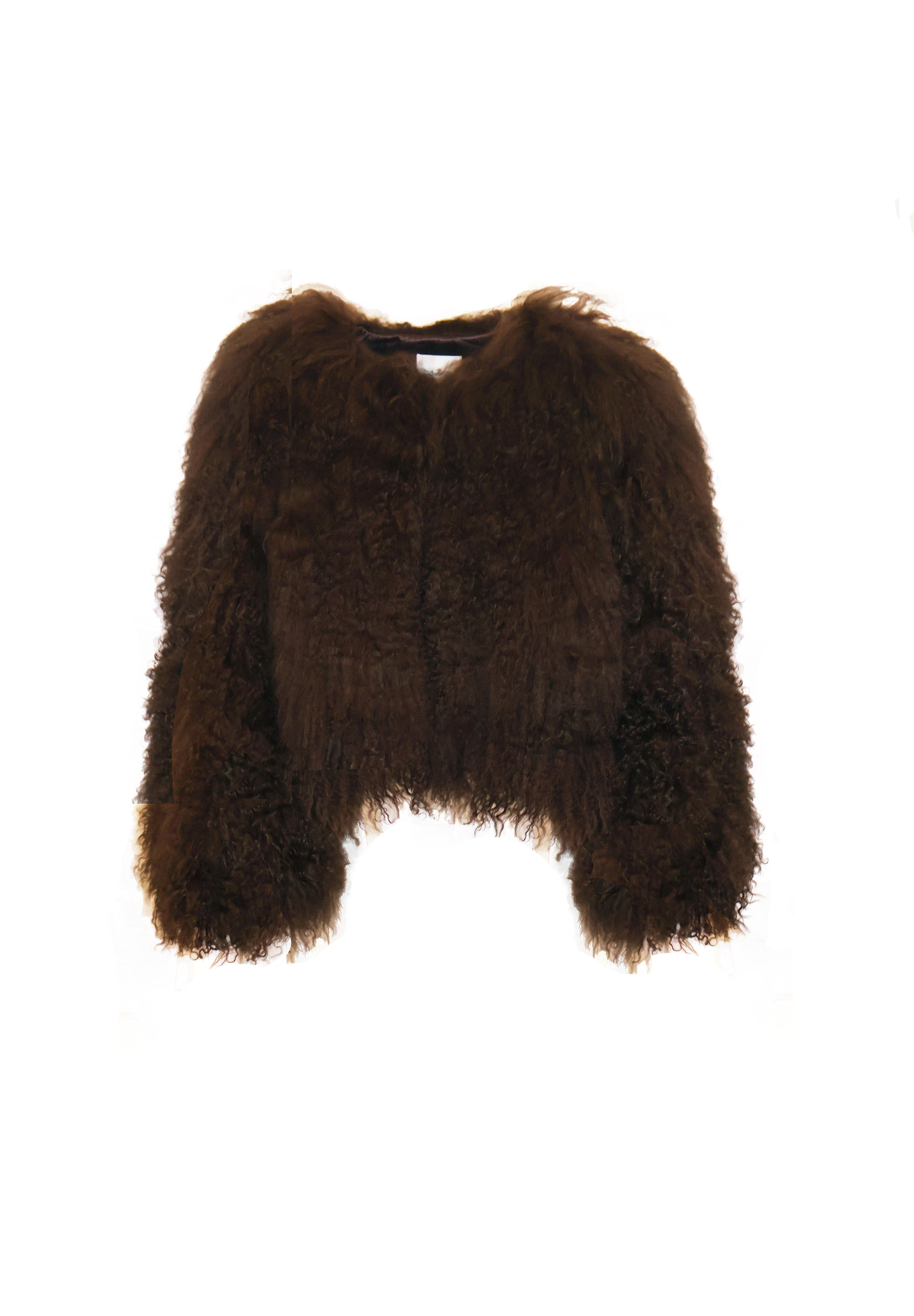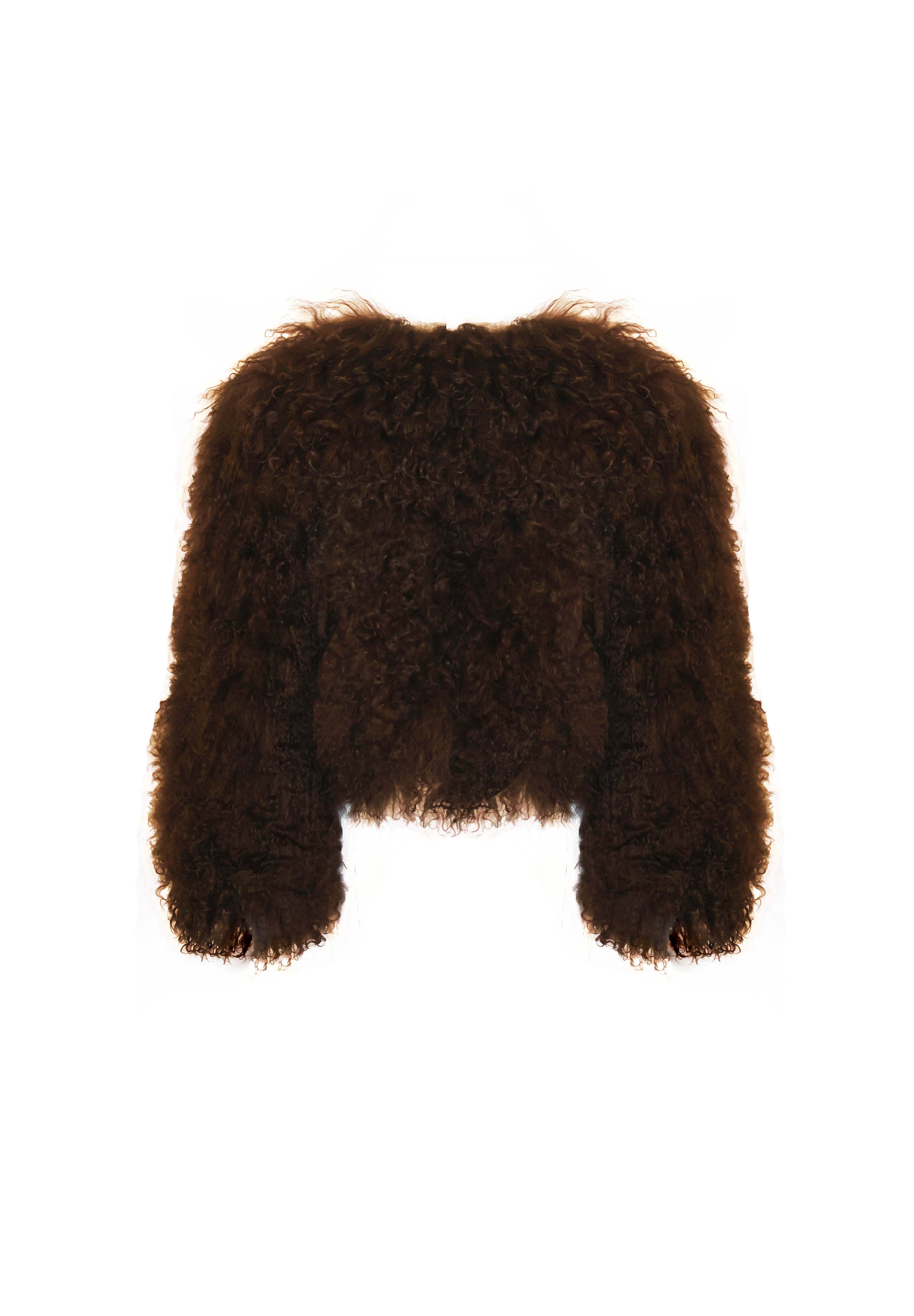 Wrap yourself in the timeless allure of the Evangelista Jacket, a piece that marries refined elegance with wild romance. This cocoa-brown Mongolian fur jacket is the centerpiece of our collaboration with Priscila Evangelista, known for her exquisite touch and devotion to luxurious textures. Each curl of plush Mongolian fur is chosen for its rich warmth, evoking the earthy allure of cocoa in winter.
