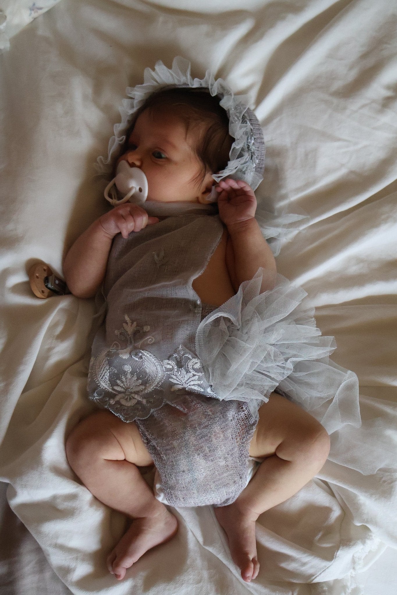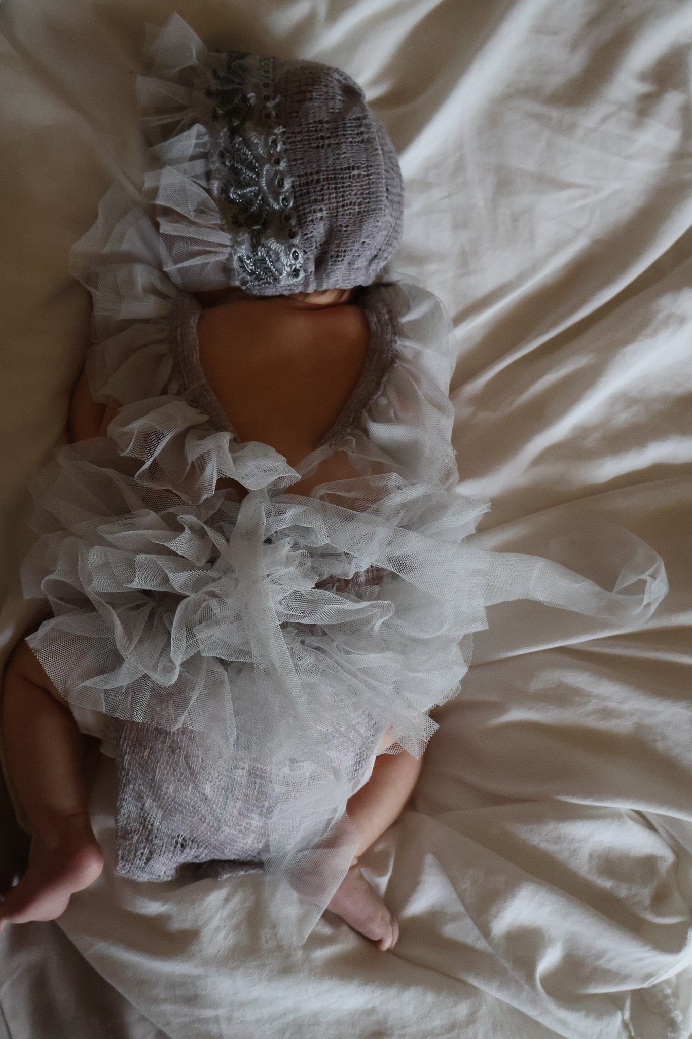 Ellie Newborn Romper & Bonnet in Dove
