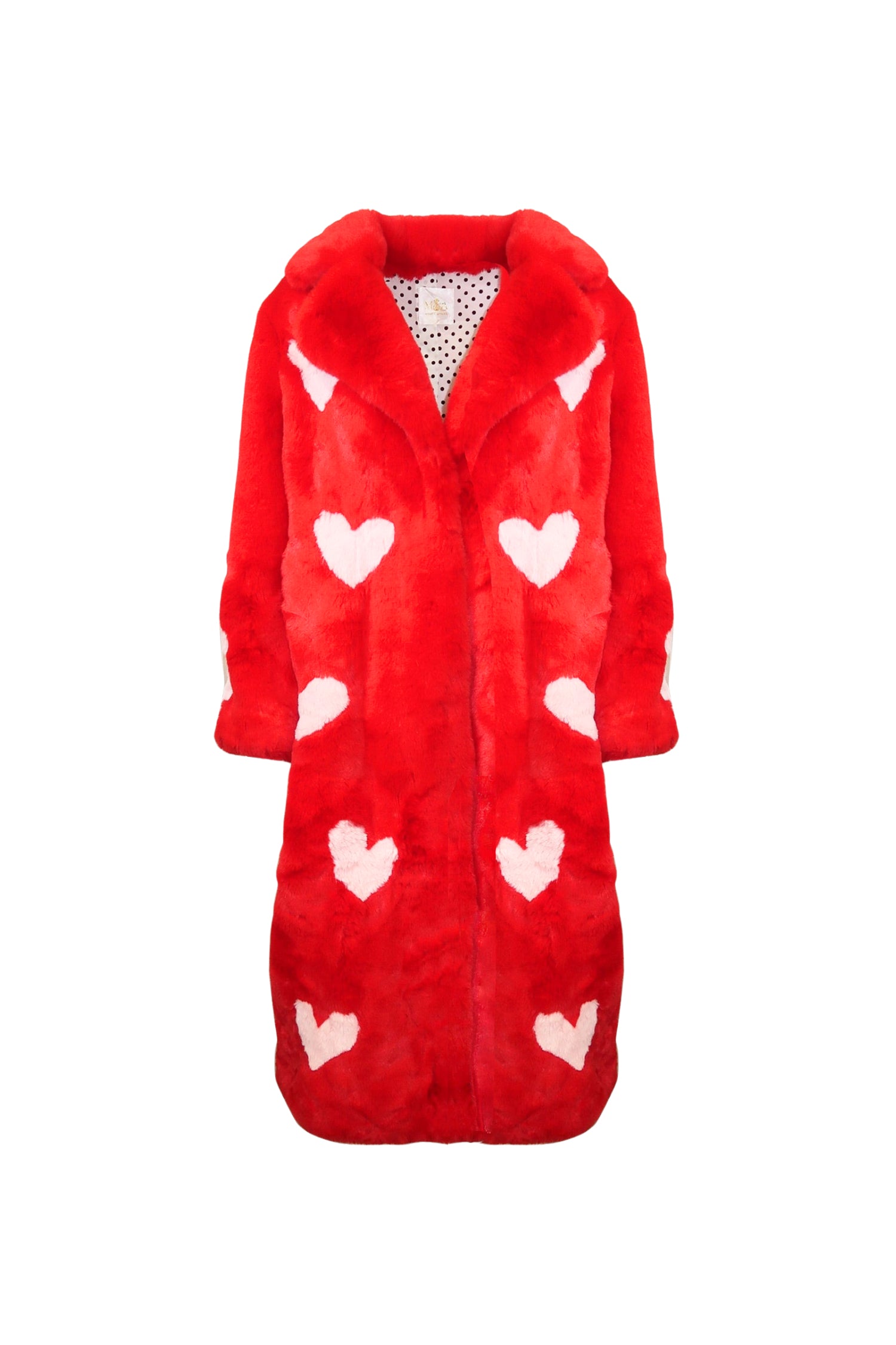 Wear your heart on your sleeve (literally!) in the Queen Of Hearts Faux Coat. We've emulated our magnificent Queen of Hearts pink fur coat and created this enchanting faux-fur version just for you. Equal part feminine and rockstar glam, this charismatic piece willĀ turn heads this winter.Ā