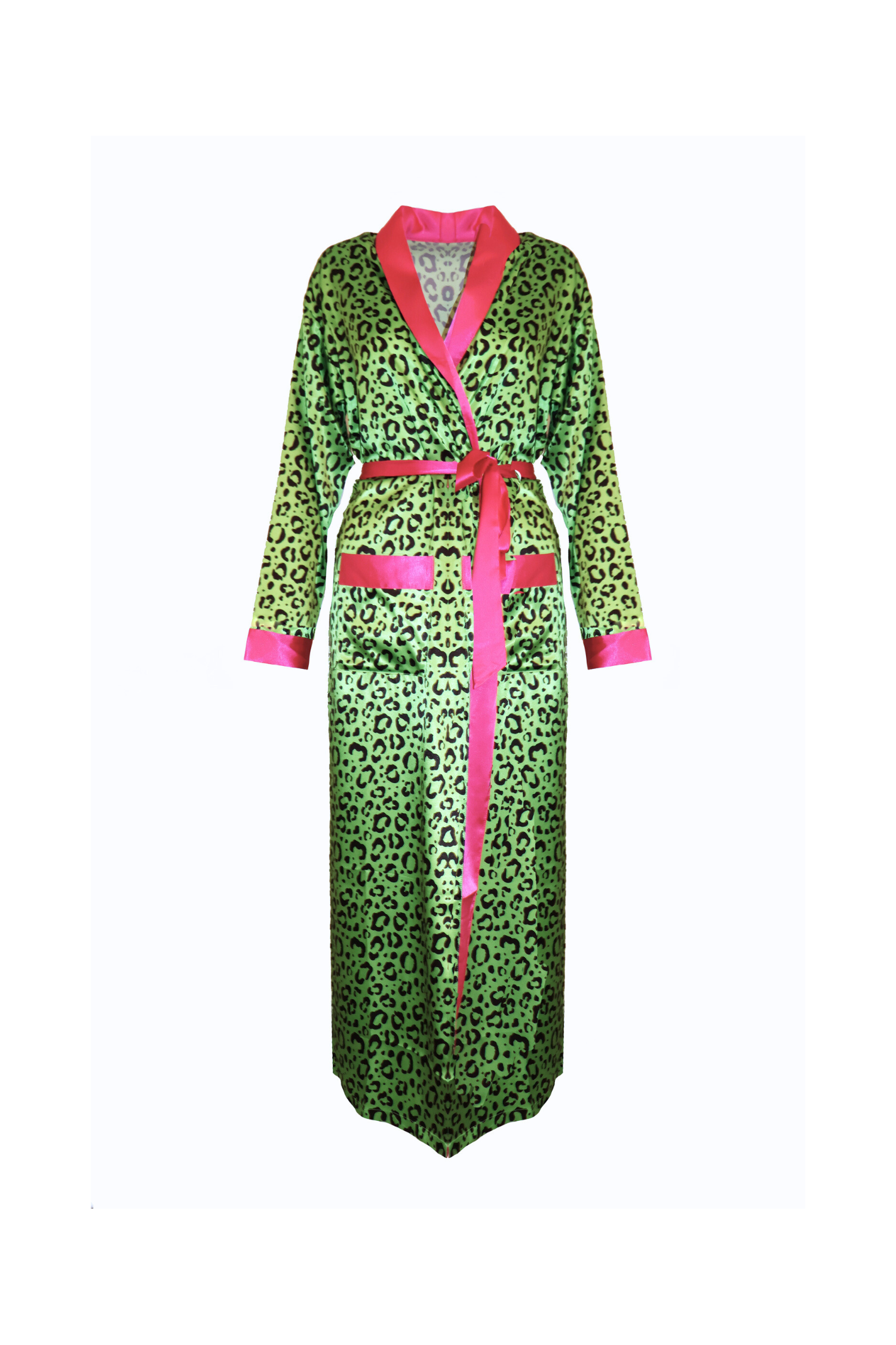 This curated line is dripping in high-octane glamour, featuring wild neon green leopard prints and sizzling hot pink that screams, “Knock knock b*tches, I’ve arrived!” Imagine prowling around in head-turning pyjama sets that blur the line between bedtime and red carpet, or stepping out in neon yellow slippers so fierce they deserve their own spotlight.
