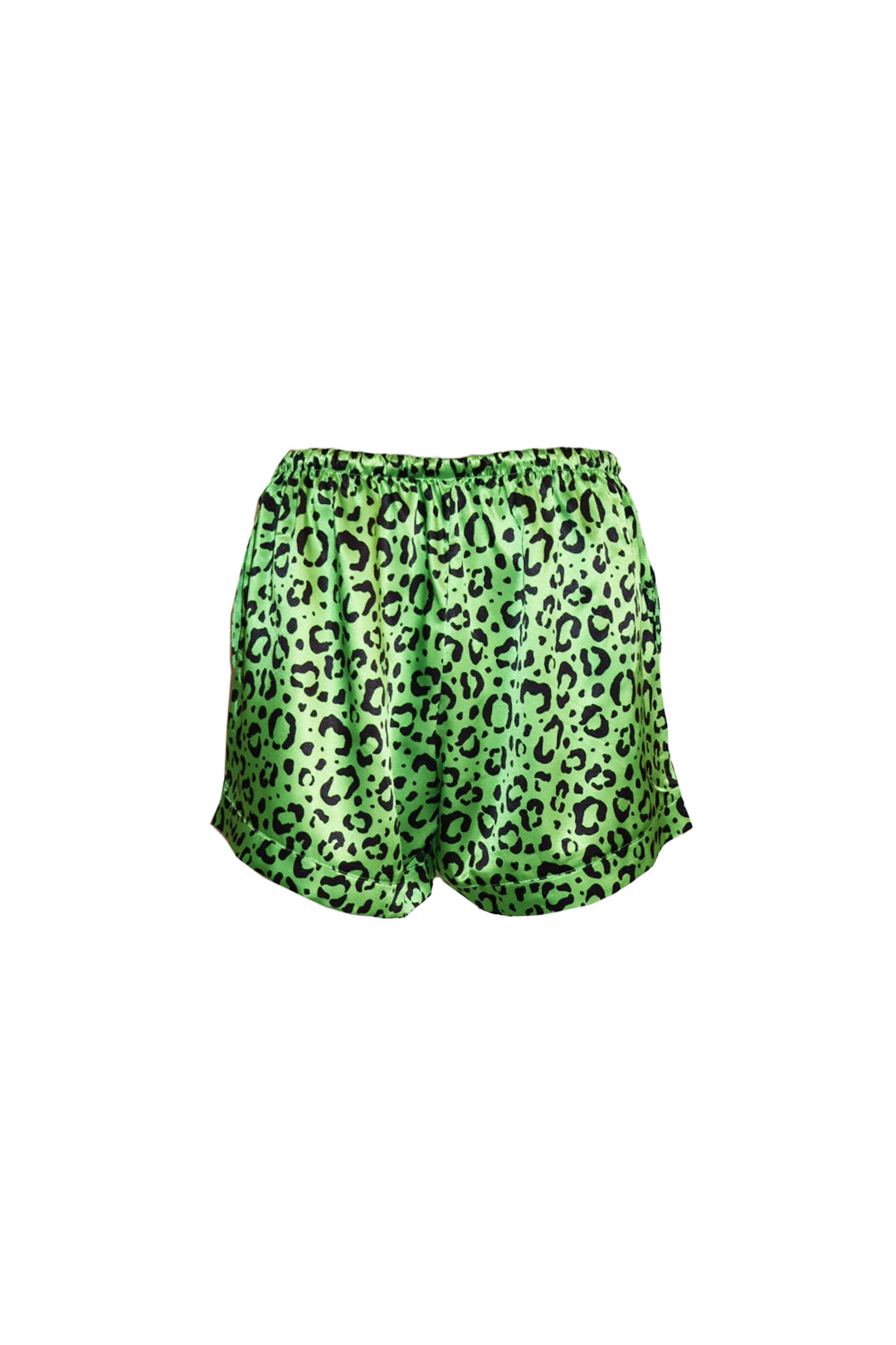 Into The Wild Satin Sleep Shorts in Neon Leopard
